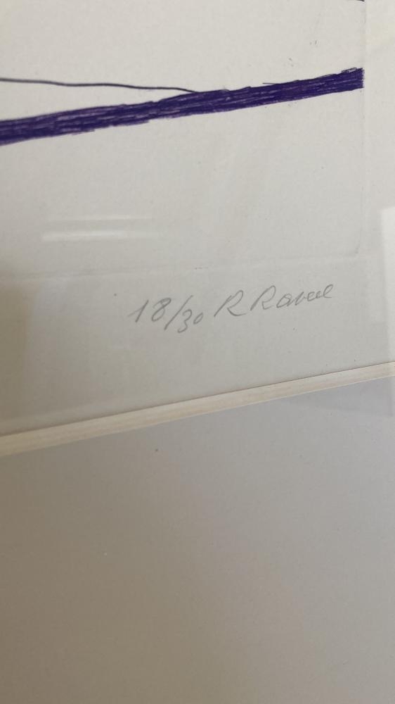 Mooie kleurenets met typische elementen van raveel. Gedrukt door Piet Clement en uitgegeven door printshop amsterdam. Ingekaderd en voorzien van passe-partout. Bij voorkeur af te halen, verzenden kan maar met risico op glasbreuk voor de koper.