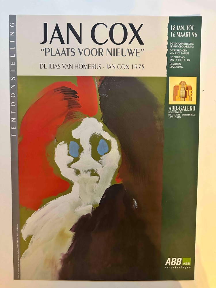 3 afiches van Jan Cox. verschillende afmetingen. Jan Cox (Den Haag, 27 augustus 1919 Antwerpen, 7 oktober 1980) was een Nederlands-Belgische kunstschilder. Hij studeerde geschiedenis en archeologie in Gent. Cox was in 1945 medeoprichter van de kunstenaarsgroep La Jeune Peinture Belge met de schilders Louis Van Lint en Marc Mendelson. Via zijn contacten met Pierre Alechinsky raakte hij betrokken bij de Cobra-beweging. Cox voelde zich echter niet aangetrokken tot het spontane werk van Cobra, zodat hij zich al snel weer afkeerde van deze beweging.
