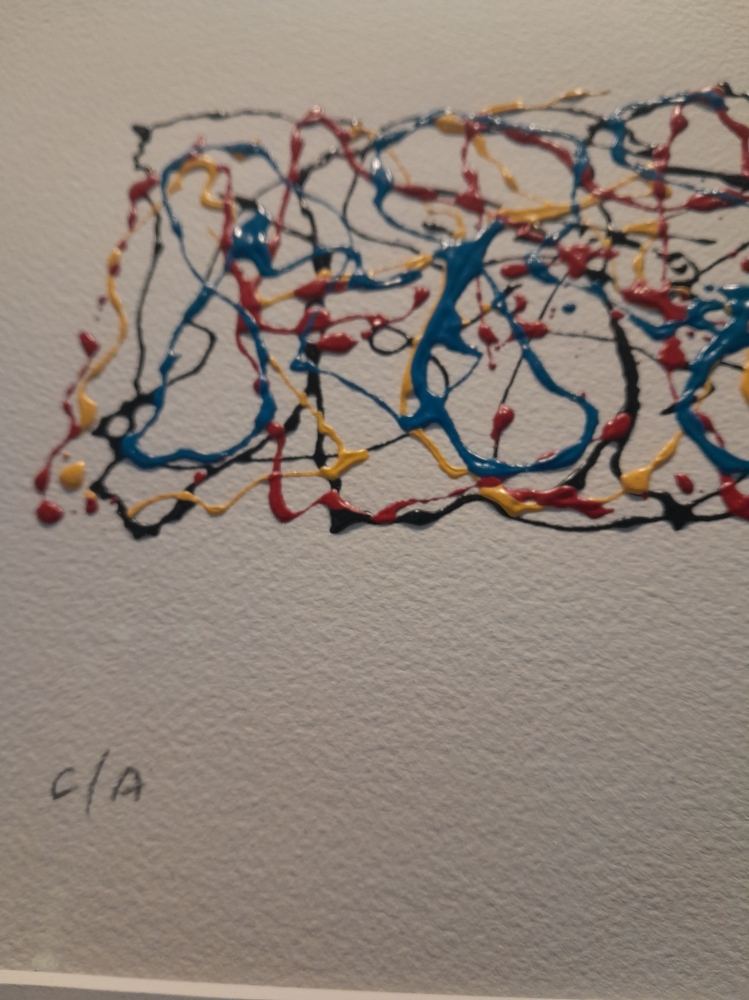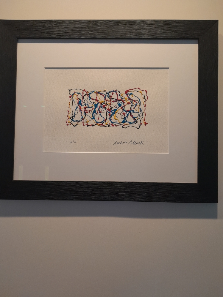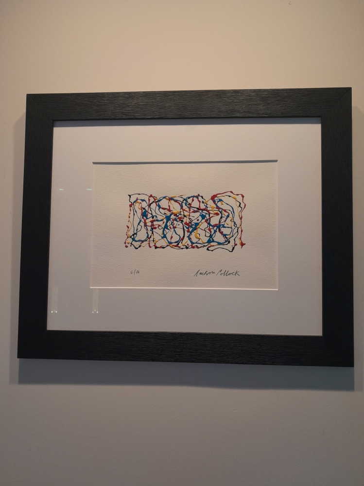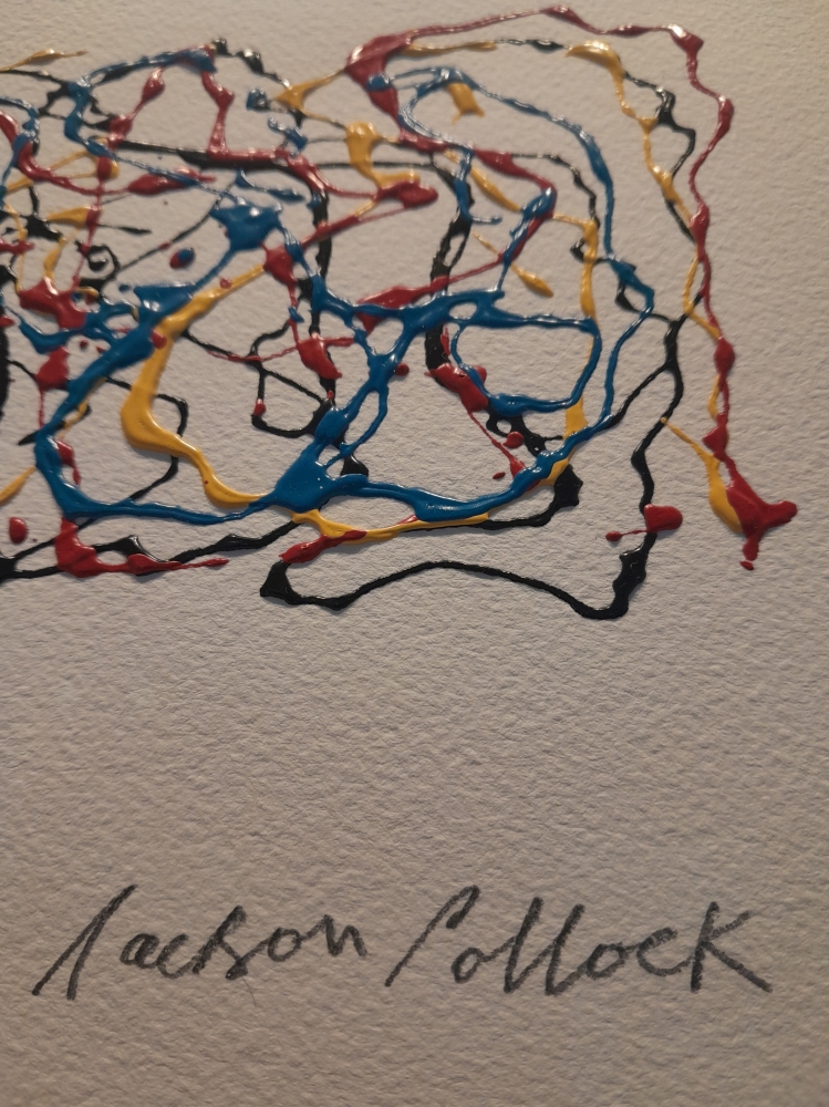 Uniek werk naar Jackson Pollock. Geschilderd volgens gekende druppel techniek. Uniek werk, getekend Jackson Pollock. Zonder certificaat. Ingekaderd in museumkader. Jackson Pollock was een Amerikaanse topschilder, geboren in 1912, behoorde tot het abstract expressionisme en was een grootmeester. Zijn werken staan in de top 5 van duurste verkochte werken.