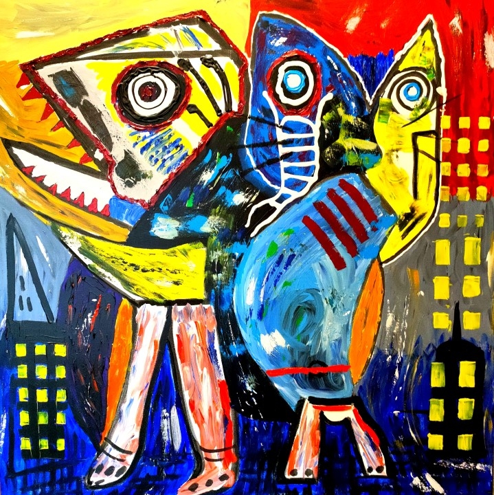 Hiermede het tweede originele cobra werk van Andre M. Groes , na langere tijd ontwikkeld tot een cobra stijl van schilder , dus cobra kleurrijke van start een auto - didact , hopende dat het publiek daar van houdt . heeft U vragen , bel mij a.u.b. 06 52 189 253