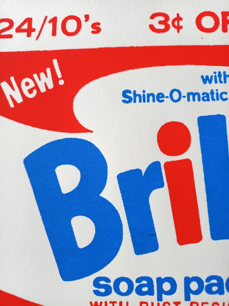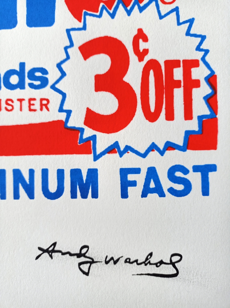Andy Warhol - Zeefdruk - Brillo Soap Pads Poster 1970 - Gestempelde handtekening (#0352) Tweekleurige zeefdrukposter, rood en blauw, op dik museumpapier. Uitgegeven door het Pasadena Art Museum, Californië voor de tentoonstelling "Andy Warhol: Pasadena Art Museum", 12 mei - 21 juni 1970. Afmetingen: 30,2x40,2cm. Zeefdrukposter, gestempeld in beperkte oplage en in uitstekende staat. De foto's maken deel uit van de omschrijving, bekijk de foto's om zelf te beoordelen in algemene staat. Wordt door mij veilig verpakt en wereldwijd verzonden.