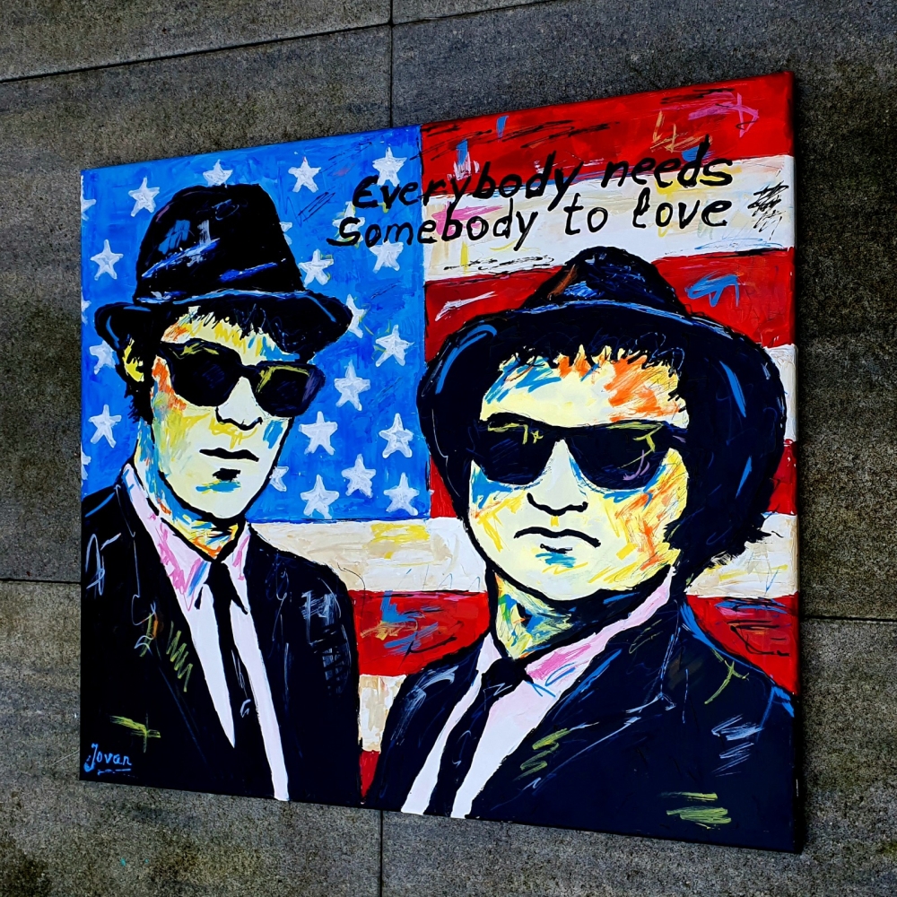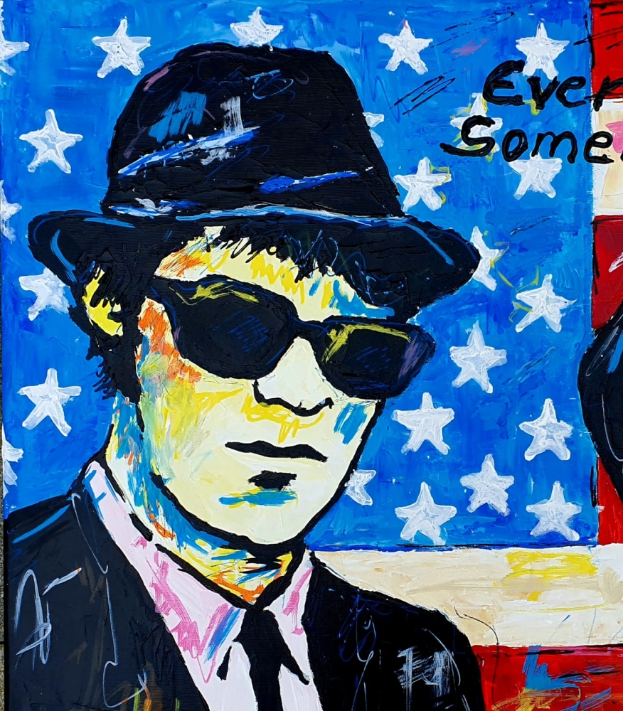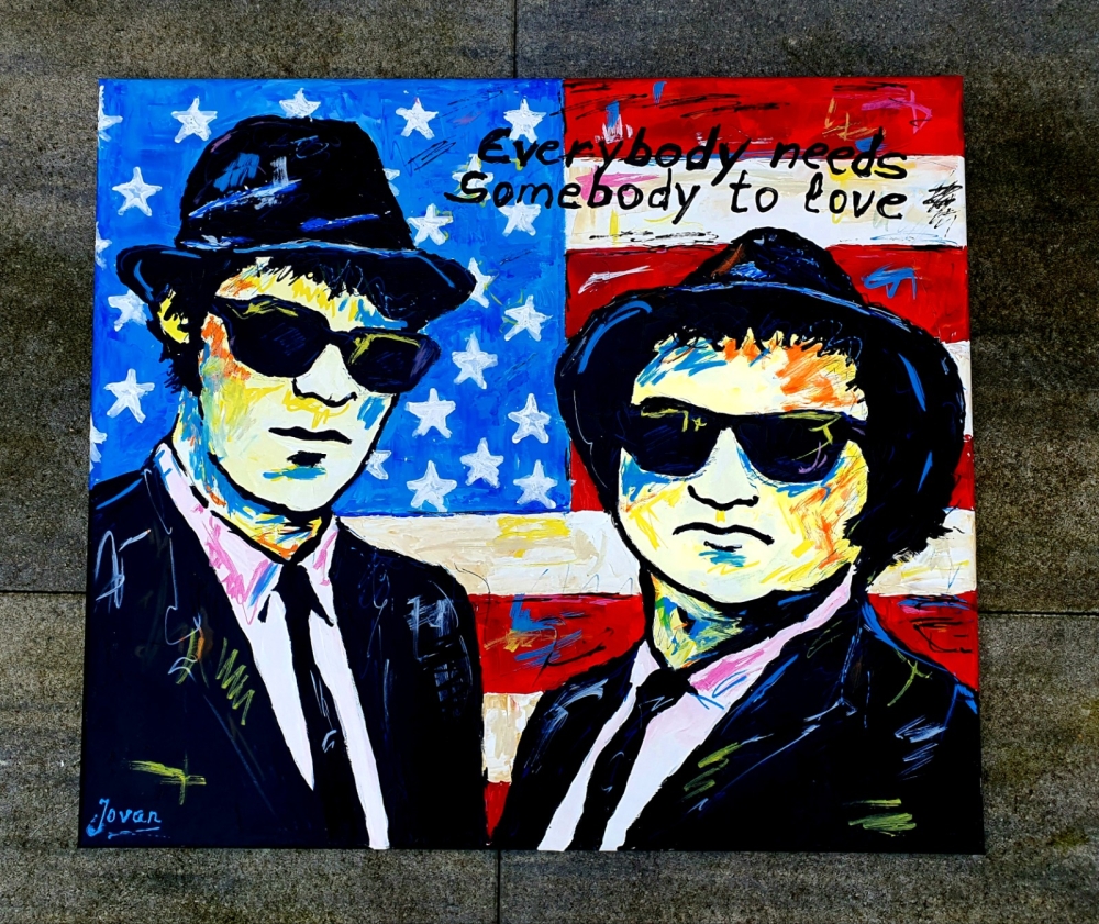 Uniek werk, uit een serie schilderijen ''R & R forever''in Street/Pop art stijl, van de Nederlandse professionele / hedendaagse kunstenaar Jovan Srijemac (1962). Werk is geschilderd met acrylverf acryl marker, sprei,. Schilderij is met de hand gesigneerd, met certificaat van echtheid, is gelakt en klaar om op te hangen. De zijkanten zijn geschilderd als onderdeel van het schilderij en hoeven niet te worden ingelijst. Dit werk past goed in een modern interieur of kantoorruimte. "De chaos van ideeën die in mijn hoofd zijn ontstaan, het innerlijk verstoken van energie, wil als een vulkaan naar buiten komen en zo een explosie worden en een symfonie van kleuren op het doek, omlijst met materie, figuren, gezichten of abstracte compositie" . Mijn werk ligt dicht bij de expressionistische stijl, maar ik experimenteer graag met pop-art en action painting. Mijn werk uit de jaren tachtig was surrealistisch. Ik wilde een bericht sturen naar de kijkers. Het hoofdthema ging over het leven in de wereld, tegen de oorlog. In de jaren 90 was mijn werk somber, donker van kleur, net als mijn gevoelens. Ik ben begin jaren negentig uit mijn land (voormalig Joegoslavië) ontsnapt toen de oorlog uitbrak. In de jaren '00 was ik op zoek naar kleur. eindelijk gelukt tot nu toe. Mijn werk is nu kleurrijk, abstract expressionistisch. Het meeste werk is geschilderd met een paletmes. Er is kleur op het doek aangebracht met een gevoel en emotie die diep uit mijn ziel komt. Thema is minder belangrijk als ik tevreden ben met de compositie en kleur. Experimenteren in de kunst, met stijlen, technieken, kleuren etc, vind ik erg belangrijk. Ik denk: "Als je als artiest je hele leven vasthoudt aan één stijl, dan ben je als artiest dood." In de kunst en in het leven is er voor mij één doel: doorgaan! En ik zeg vaak: "We weten pas wat er achter de gesloten deur verborgen zit als we hem openen" Citaat uit mijn boek: ''Apocalypse of the soul''