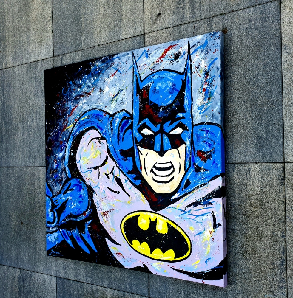Uniek werk, uit serie schilderijen in Street / Pop art stijl, door Nederlands professioneel / hedendaagse kunstenaar Jovan Srijemac (1962). Werk is geschilderd op 3D doek met acrylverf, paletmes, acryl spray en acryl marker... Schilderij is handgesigneerd, met echtheid certificaat, is gevernist en klaar om op te hangen. De zijkanten zijn geverfd als onderdeel van het schilderij en hoeven niet in te lijsten. Dit werk past goed in een modern interieur of kantoorruimte. `` De chaos van ideeën die in mijn hoofd zijn ontstaan, de innerlijke verstoken energie, wil eruit komen als een vulkaan en zo een explosie worden en een symfonie van kleuren op het doek, omlijst met materie, figuren, gezichten of abstracte compositie '' . Mijn werk staat dicht bij de expressionistische stijl, maar ik experimenteer graag met pop art en action painting. Mijn werk uit de jaren 80 was surrealistisch. Ik wilde de kijkers een boodschap brengen. Het hoofdthema ging over het leven in de wereld, tegen de oorlog. In de jaren 90 was mijn werk somber, donker van kleur, net als mijn gevoelens. Ik ben begin jaren negentig uit mijn land (voormalig Joegoslavië) ontsnapt toen de oorlog uitbrak. In de jaren 00 was ik op zoek naar kleur. tot dusver eindelijk gelukt. Mijn werk is nu kleurrijk, abstract expressionistisch. Het meeste werk is geschilderd met een pallet mes. Er is kleur op het doek aangebracht met een gevoel en emotie die diep uit mijn ziel komt. Thema is minder belangrijk als ik tevreden ben met de compositie en de kleur. Experimenteren in kunst, met stijlen, technieken, kleuren, etc, vind ik erg belangrijk. Ik denk: "Als je als kunstenaar je hele leven maar aan één stijl vasthoudt, dan ben je als kunstenaar dood." In de kunst en in het leven is voor mij één doel: doorgaan! En ik zeg vaak: "We weten niet wat er achter de gesloten deur verborgen is totdat we hem openen" Citat uit mijn boek : ''Apocalyps van de ziel''