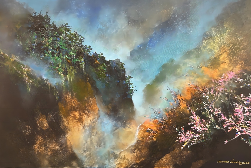 In this acrylic piece, I meld fine art with oriental sensibilities and a touch of realism, capturing an ethereal landscape emerging from a mystical mist. It's a harmony of nature's resilience and grace. Each stroke is a breath, infusing your space with an invigorating spirit of renewal and tranquility, beckoning viewers to pause and embrace the serene dance of light and shadow.