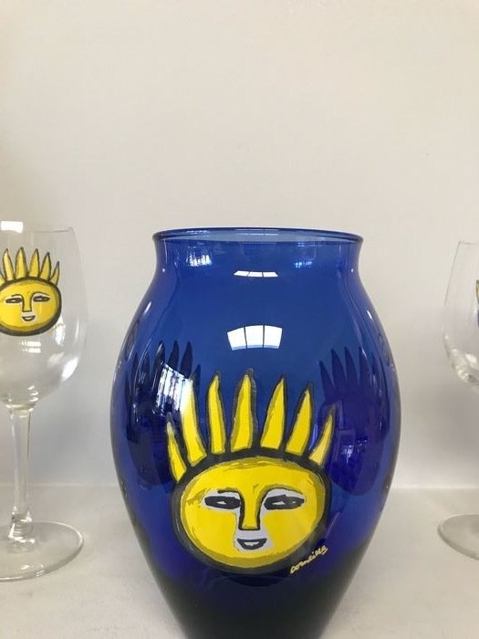 Vaas van de schilder Guillaume Corneille, stichtend lid van de Cobra-groep met Karel Appel, Asger Jorn, Dotremont, Constant, Jacques Doucet en Alechinsky. De zon met 7 stralen heeft voor Corneille een belangrijke symboliek: ze staat voor de 7 zonnige dagen van de week. Afmetingen vaas : 19 (Hoogte) x 11 cm (Diameter). Serigrafie op glas, gesigneerd in de plaat. Verzekerd verzonden door UPS Perfect voor een cadeau!