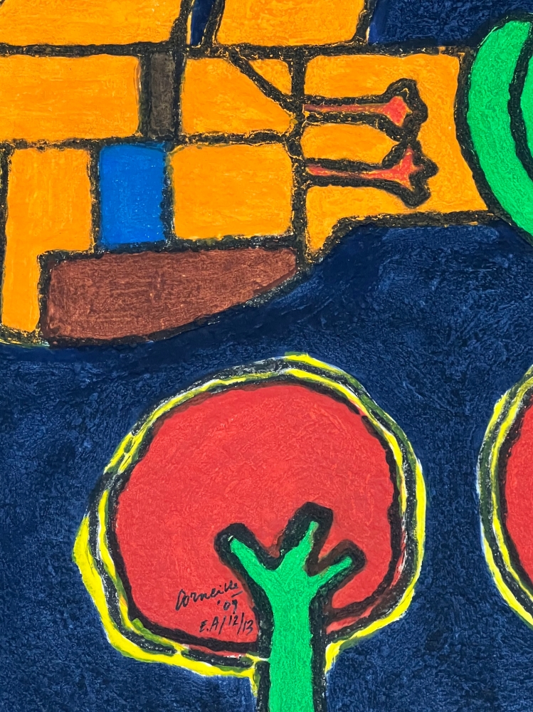 Groot formaat Carborundum litho. Wij verkopen een artist's proof E/A 12/13 gesigneerd en gedateerd in viltstift door Corneille onderaan. met Atelier Corneille stempel op de achterkant. Zeer goede staat - 72 x 97 cm Commerciële editie op 130 exemplaren C
