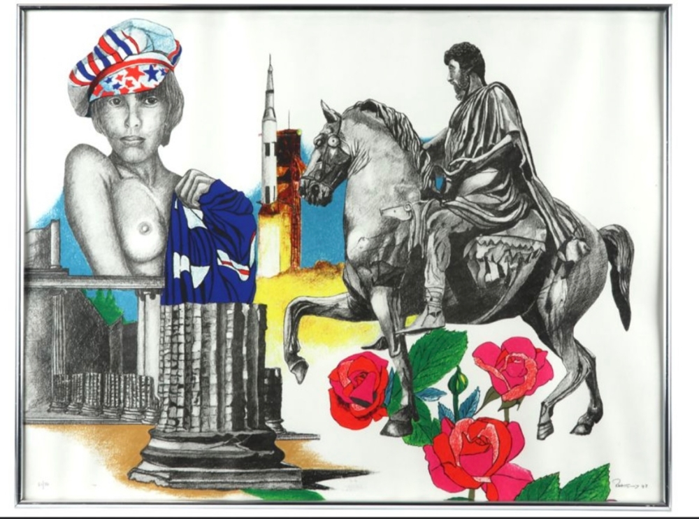 Mooie en kleurrijke litho van Paul Van Hoeydonck uit 1978. Het werk is met de hand geSigneerd en genummerd in potlood. Typisch werk van Paul van Hoeydonck met de voorstelling van een vrouw in een surrealistisch landschap.