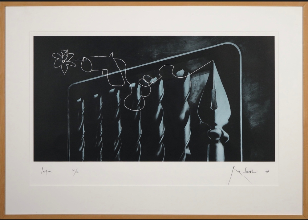 Zeer mooi en groot werk van de Nederlandse kunstenaar Rob Scholte. Het werk heeft als titel Pacifisme en is genummerd op 100 exemplaren waarvan dit nummer 46 is. Het werk is ook professioneel ingelijst en meet 73 cm hoogte en 103 cm breedte