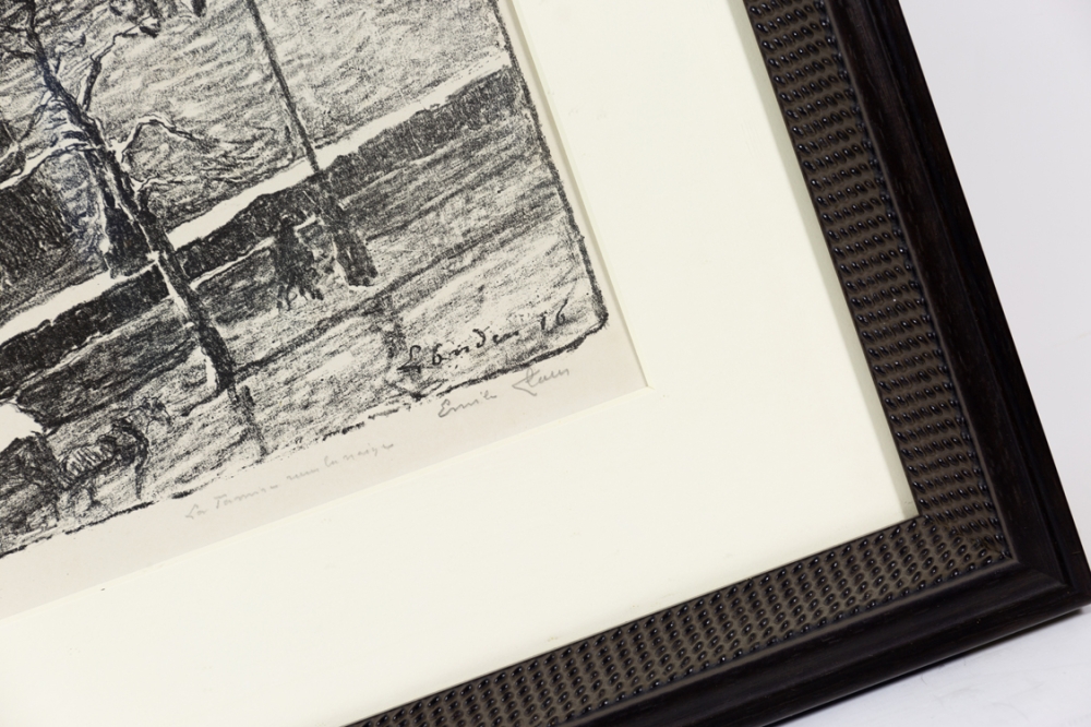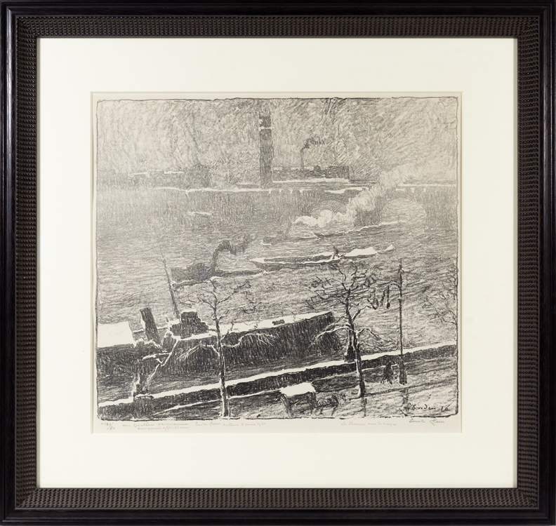 Uniek: getekend in potlood (naam van het werk): "La Tamise dans la neige" (= de Thames in de sneeuw)