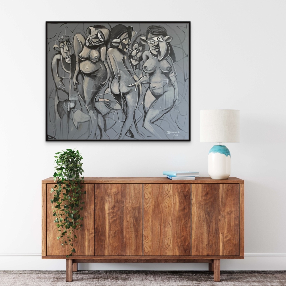 Ideale investering voor bedrijven en particulieren. Groot formaat schilderij op doek in olieverf en oliestift. Typische stijl van Andrzej Gudanski - Abstract Elementarisme Afmeting 120cm x 100cm Het doek wordt geleverd met een echtheidscertificaat van "Andrzej Gudanski" Galerijprijs: 10.000 !!!Dit werk wordt verkocht met een dunne zwarte zwevende lijst!!! Andrzej Gudanski, dankzij onbetwist talent en creatieve gevoeligheid, en door enorme ijver, presenteert zichzelf vandaag als een volwassen, reeds volledig gevormde kunstenaar. Hij heeft zijn eigen unieke stijl ontwikkeld. Een kunstenaar - een kind van een tijd waarin de stemmen van het einde van de geschiedenis werden gehoord en in de kunst de postmoderne stromingen wonnen - presenteert een andere visie op de hem omringende werkelijkheid. Wat echt is, werkt samen met wat wordt ingebeeld. De kunstenaar lijkt te genieten van het ongewone, het wonderlijke en het absurde. Het is onmogelijk om onderscheid te maken tussen het serieuze en het frivool. In zijn poëtische en allegorische schilderijen schetste de kunstenaar diepgaand het drama van de moderne mens en zijn gecompliceerde bestaan.