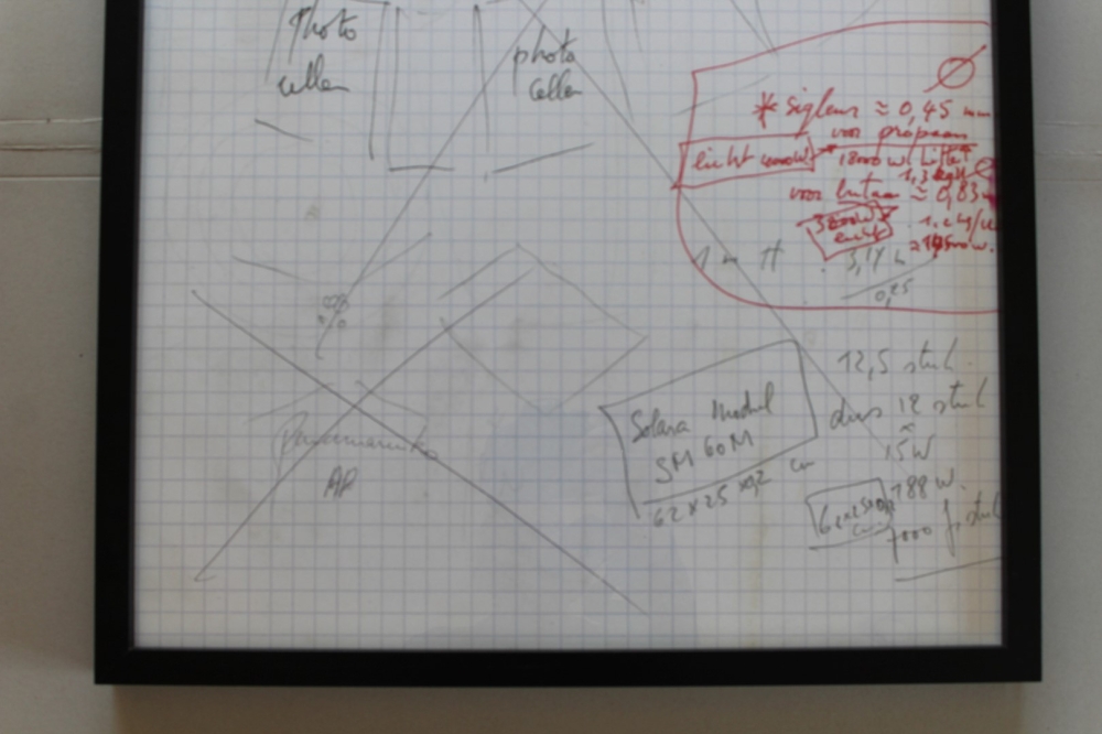 Door Panamarenko handgesigneerd en genummerd links onder. Eerst genummerd 2/100 maar dan twee strepen door en aangepast naar AP boven op de nummering 2/100. Wellicht was er een fout gemaakt bij het nummeren. Zowel de 2/100 als de AP zijn duidelijk zichtbaar. Werk in de reeks Thermo Voltaïc Energy converter in zeer goede staat.