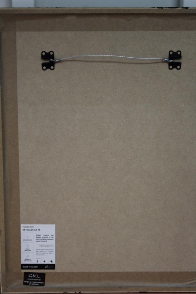 Mooie poster met 2 vouwlijnen en in professioneel kader gemonteerd met art glas en passe partout. Hayward Gallery Londen; museum Tinguely Bazel Lit. Poster n° 68 pag. 60 en 88 Boek poster uitg. Ludion