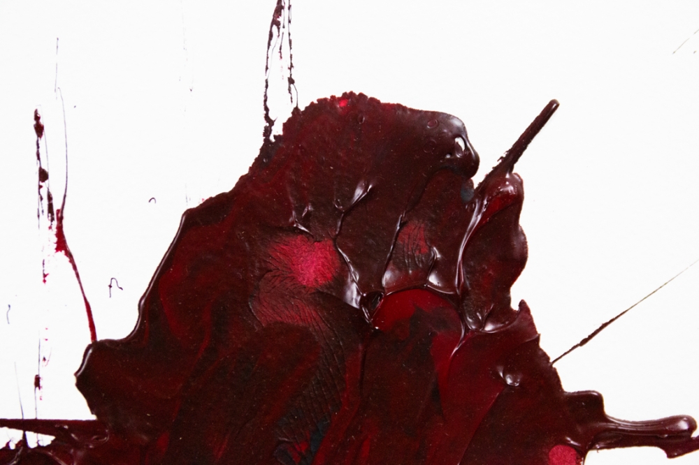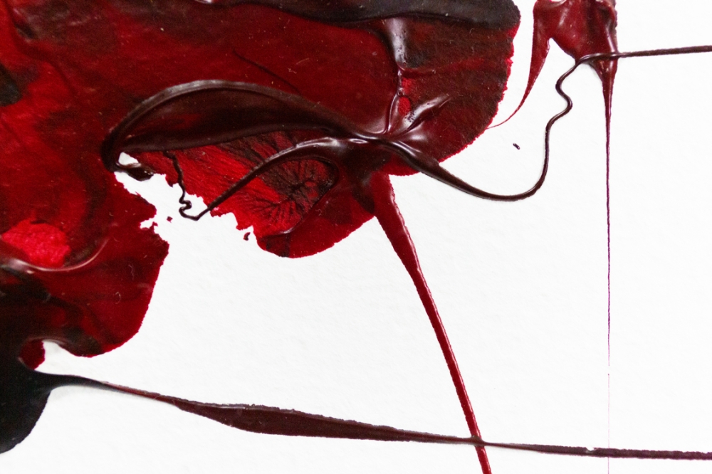 Een abstract werk met olieverf op papier van Kazuo Shiraga, een Japanse moderne kunstenaar die tot de Gutai groep van avant-garde kunstenaars behoorde. Hij werd pas na zijn dood echt internationaal erkend en gegeerd.
