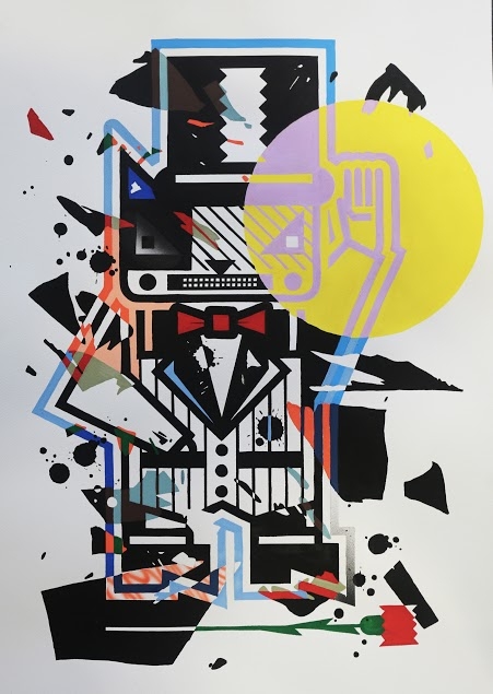 Origineel schilderij op papier van Blancbec. Onderaan getekend en gedateerd. Het werk werd gemaakt met acrylverf en graffiti. Het werk is ingelijst in een wit kader met uv-werend glas. Blancbec: Een leven in de schijnwerpers? Tegelijkertijd een opdracht om het spektakel te salueren en terug te keren in een eigen persoonlijke omgeving... om een nieuw katten-leven te ervaren...