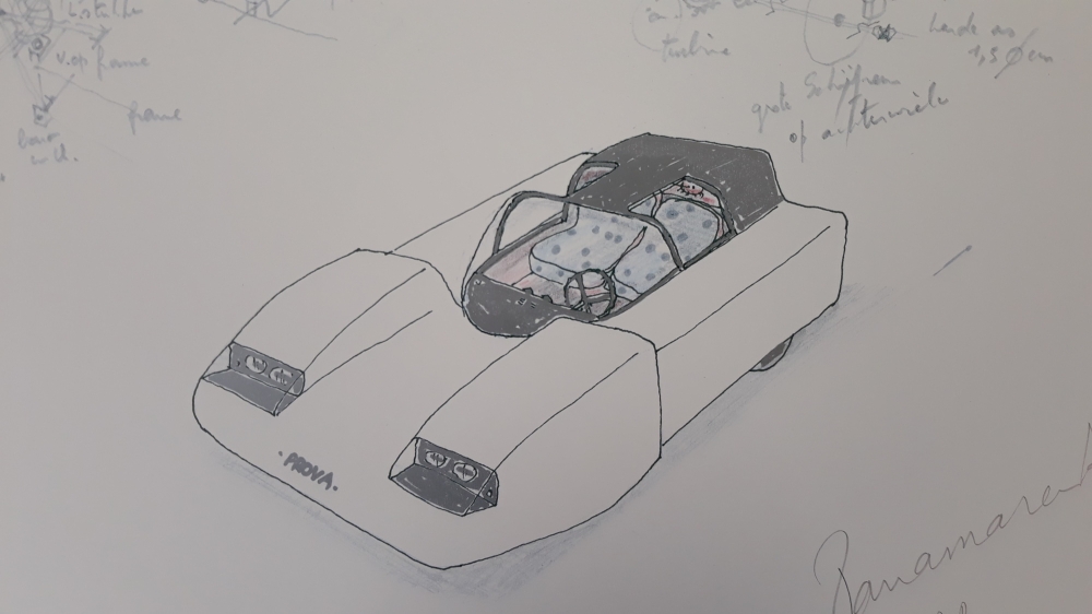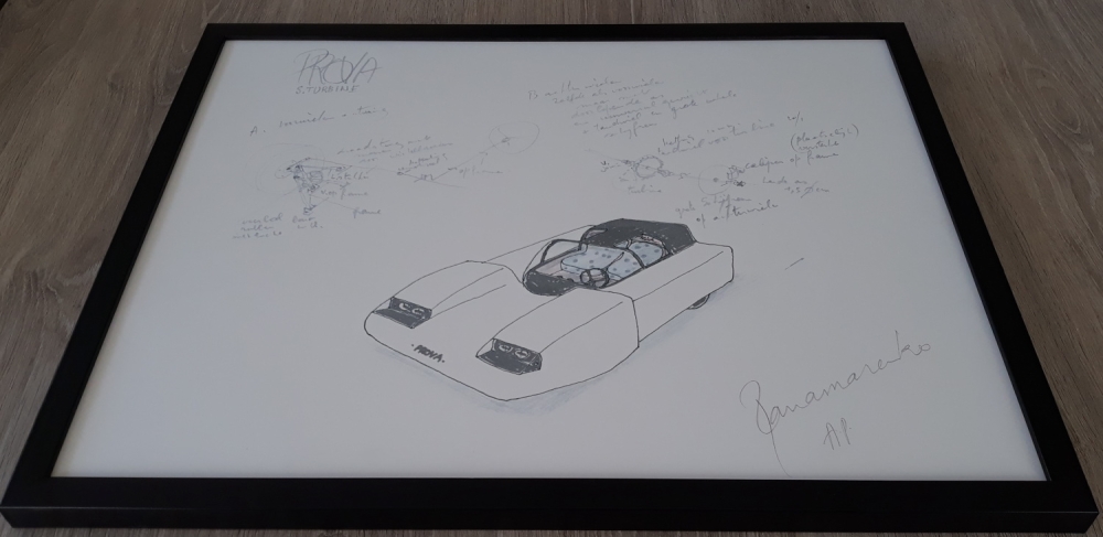 Een mooie offset van Panamarenko's Prova car, in potlood met de hand gesigneerd en genummerd als AP exemplaar (Proefdruk).