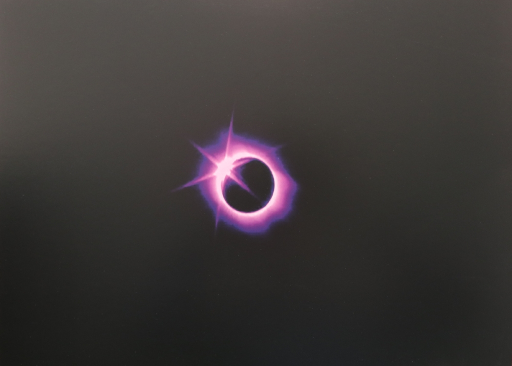 Vier samen horende fotolithos van zonne eclips van de hand van Ann Veronica Janssens. Deze vier werken zijn achteraan voorzien van A,B,C en D. Ann Veronica Janssens heeft slechts één exemplaar handgesigneerd om te voorkomen dat de vier werken van elkaar zouden worden gescheiden. Ann Veronica Janssens is een beeldhouwer van het licht, van het geluid en van de ruimte. Ann Veronica Janssens gaat bijna altijd op minimale wijze te werk zonder echt bij de minimal art te horen. Dat haar werk echter wel eens met de minimalistische stroming in verband wordt gebracht komt door de heldere vormgeving en de materiaalkeuze: transparant, glanzend of juist verdicht en schijnbaar ontoegankelijk.