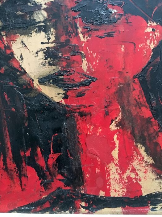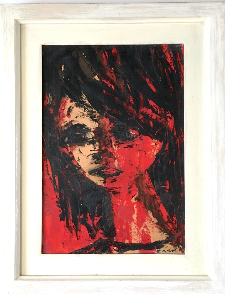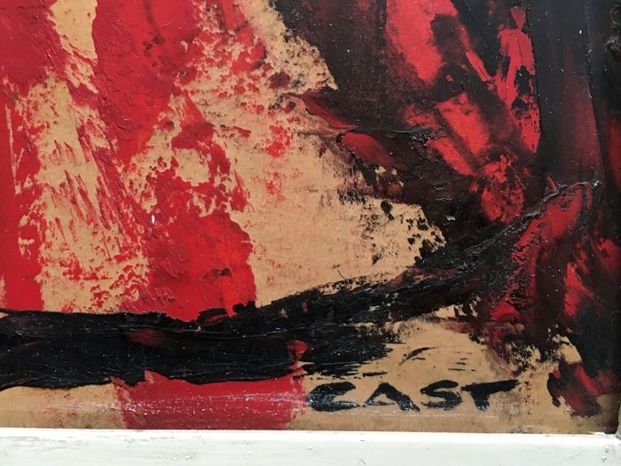 Schilderij olie op paneel gesigneerd rechts onder CAST (pseudoniem van Mia Casteleyn). Cast: schilder, graficus, tekenares van de Schelde, platteland, figuren en dieren. Werkte bij H. Van Coppenolle, L. Deroeck en Jack Goderis. Weinig dieren zijn aan haar scherpe waarneming en olijke aandacht ontsnapt: trefzekerheid en met tederheid. Bron: Arto. Afmetingen: 22cm x 39cm, met lijst 41cm x 52cm.
