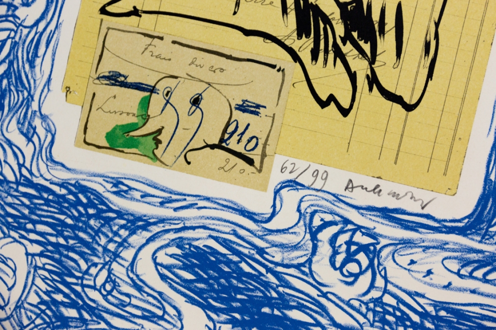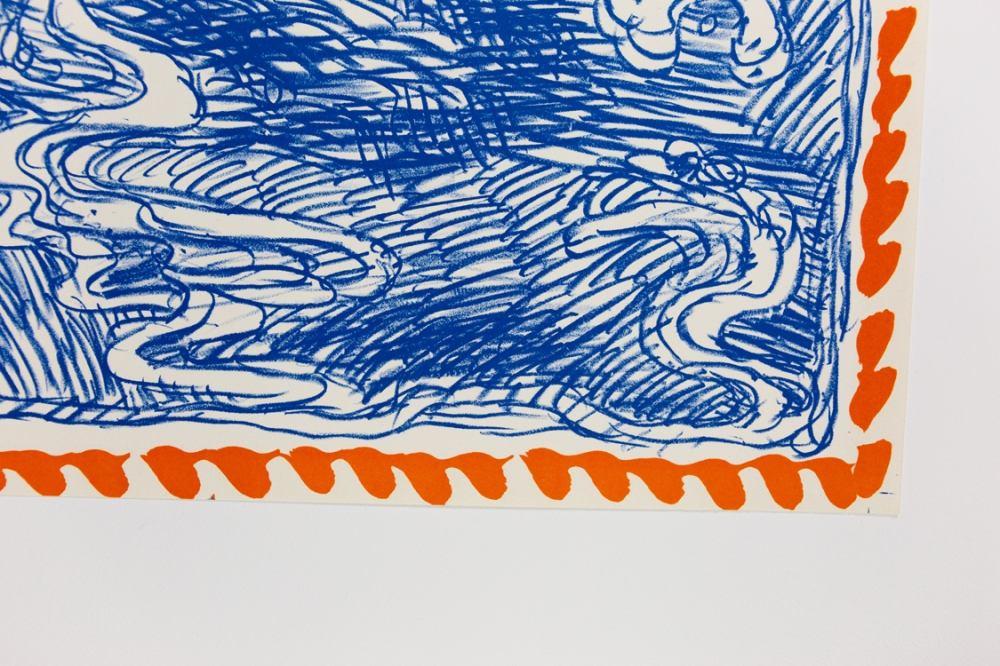 Lithografie uit de reeks "Papier Traités" van Pierre Alechinsky uit 1978. Deze reeks bevat 6 litho's en is gelimiteerd op 99 stuks, 20 AP en 15HC. De reeks maakt permantent deel uit van de collectie van Moma (Museum of Modern Art in New York) en het KMSK (Koninklijke Musea voor Schone Kunsten van België).