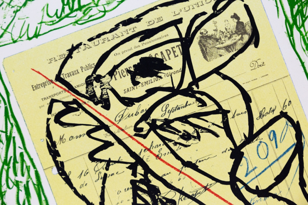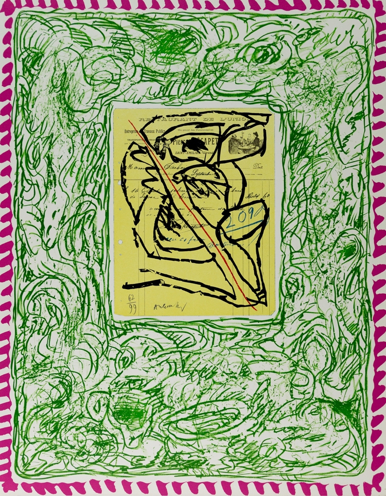 Lithografie uit de reeks "Papier Traités" van Pierre Alechinsky uit 1978.