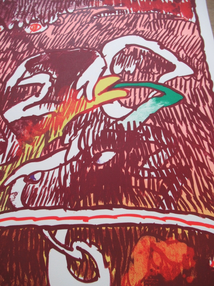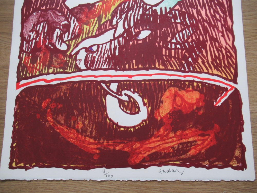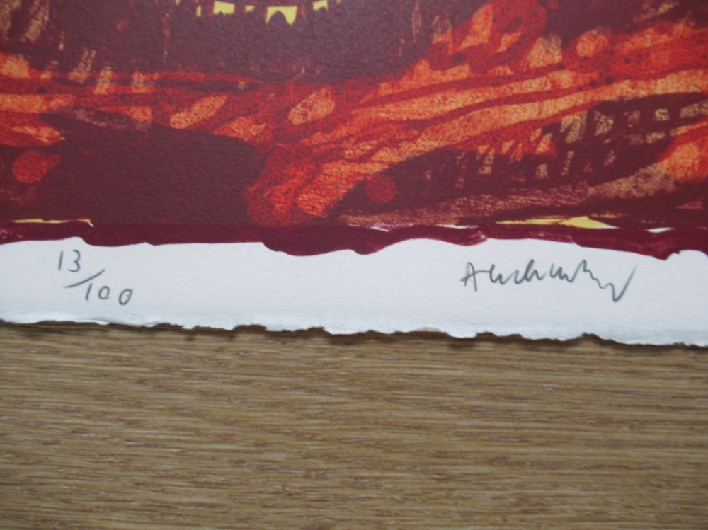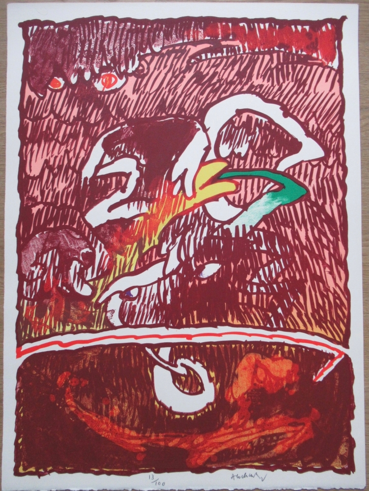 Originele lithografie van de Belg Pierre Alechinsky uit het flying objects portfolio. Deze is met de hand gesigneerd en genummerd. Op de achterzijde is de stempel te zien van de galerij London arts inc. De litho is gedrukt op dik Arches papier.