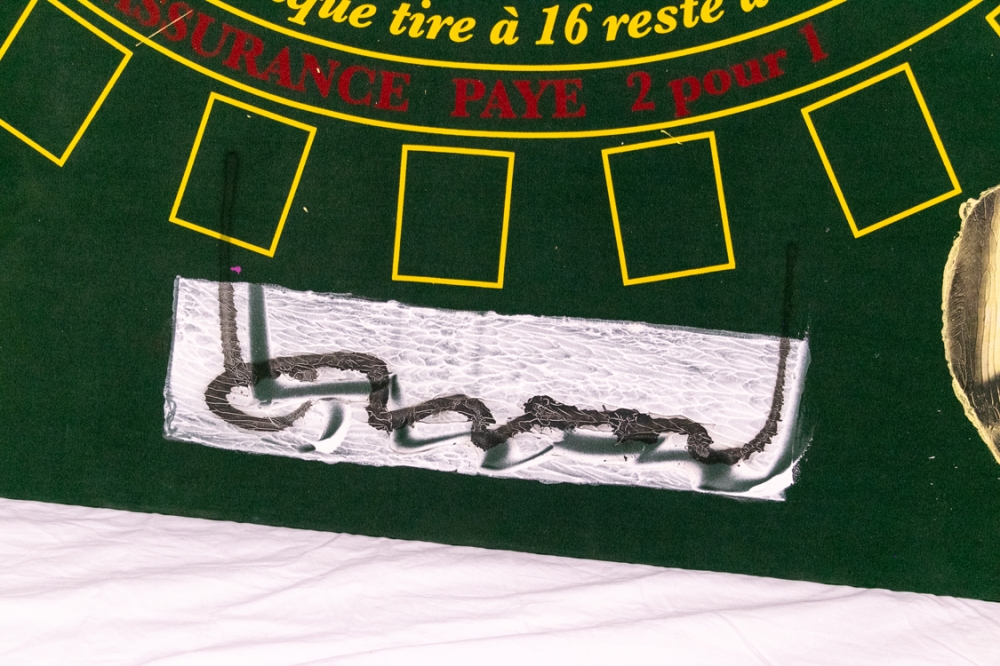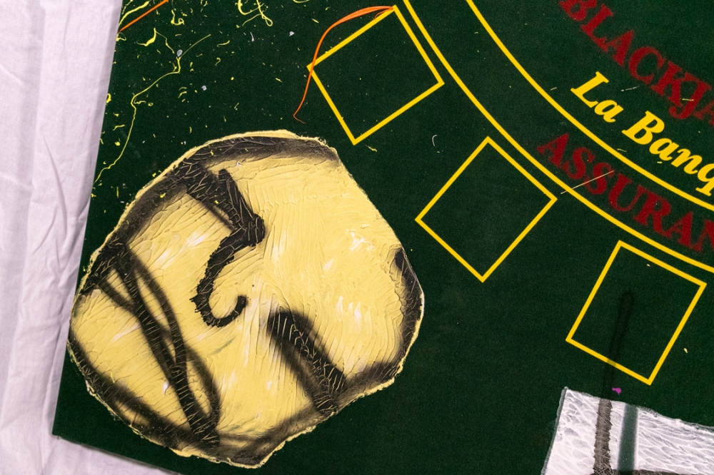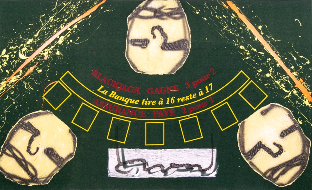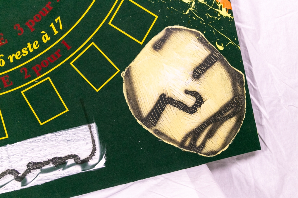 Origineel, uniek schilderij met acrylverf van Herman Brood op een casino doek.