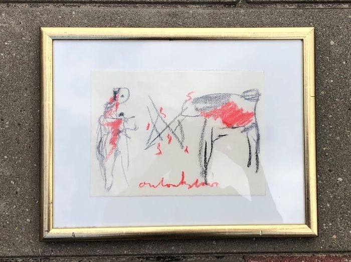 Mooie pastel/krijt tekening. Het werk meet 27 x 20 cm en heeft een gouden lijst van 43 x 30 cm. Zie mijn andere kavels voor bijpassend werk. Anton Heyboer (Sabang, 9 februari 1924 - Den Ilp, 9 april 2005) was een Nederlands schilder en graveur. Hij woonde met vier vrouwen in de gemeente Den Ilp (Landsmeer, Nederland). De 'vijfde' vrouw was zijn kunstverkoopster aan de overkant. Hoewel hij zelf een hekel had aan de kunstwereld, is hij tegenwoordig een internationaal bekende en erkende kunstenaar en zijn werk is te vinden in verschillende musea.