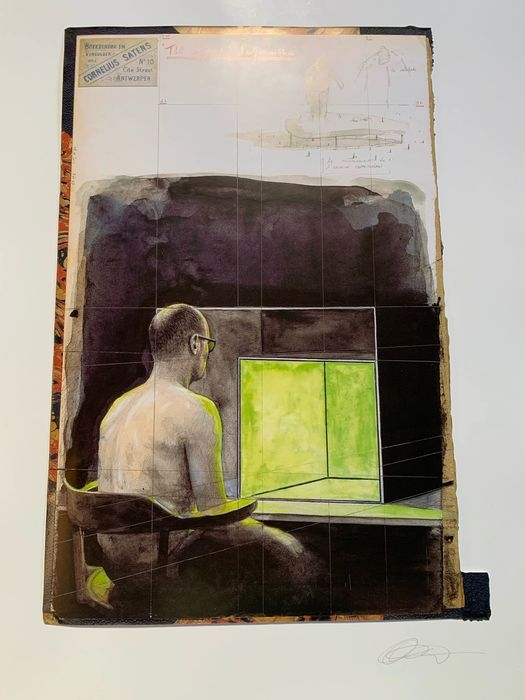 Zeer mooie collage/gemengde techniek van rising star GIDEON KIEFER. Hand gesigneerd vooraan en genummerd op 75 exemplaren op achterzijde. Gideon Kiefer is een Gentse hedendaagse kunstenaar en zit duidelijk goed in de lift. Hij is geïnspireerd door het werk van Michaël Borremans.