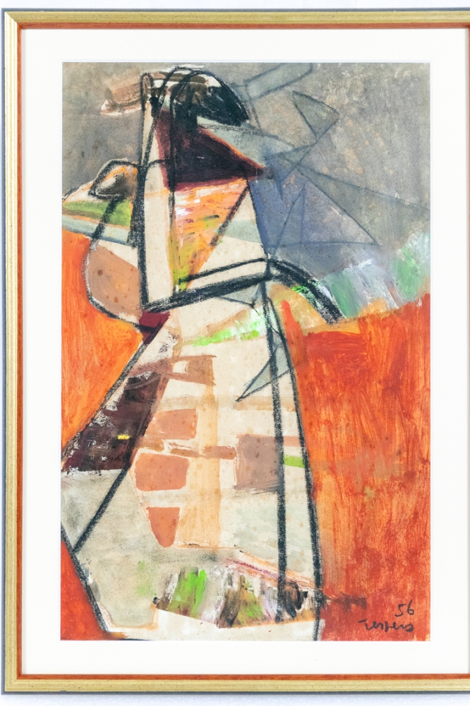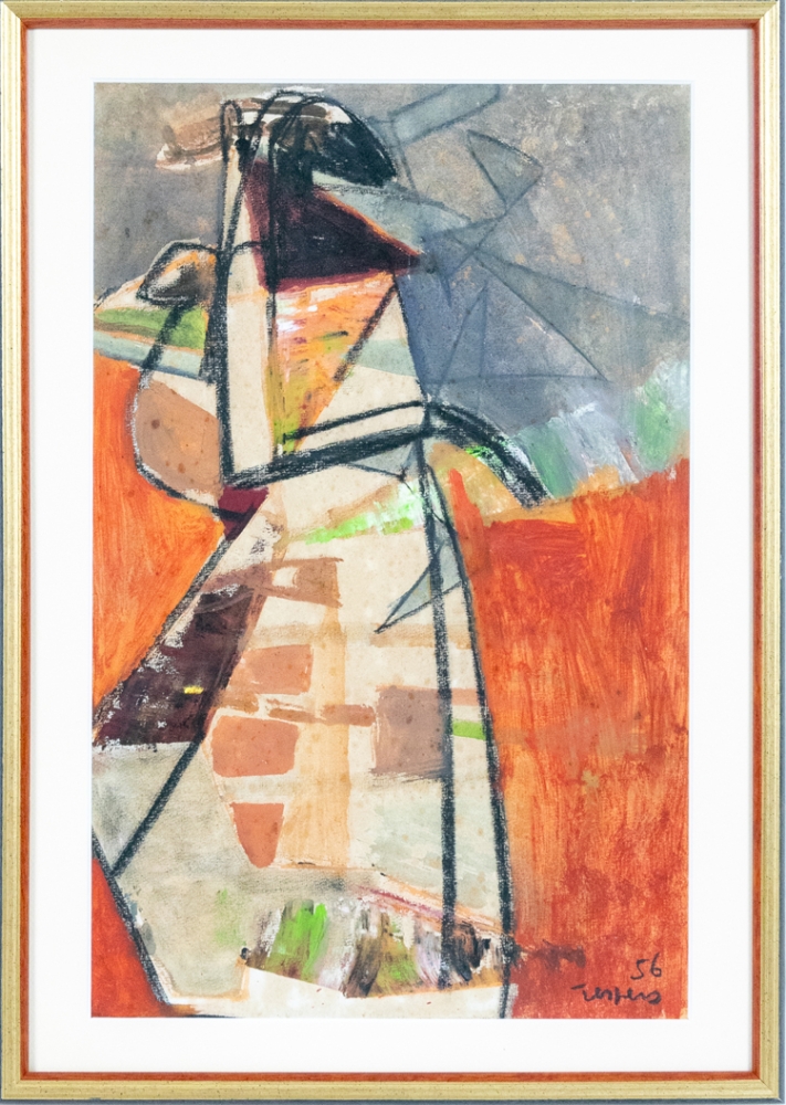 Gouache van de hand van Floris Jespers uit 1956. Het lijkt te zijn aangevuld met waterverf of olieverf.