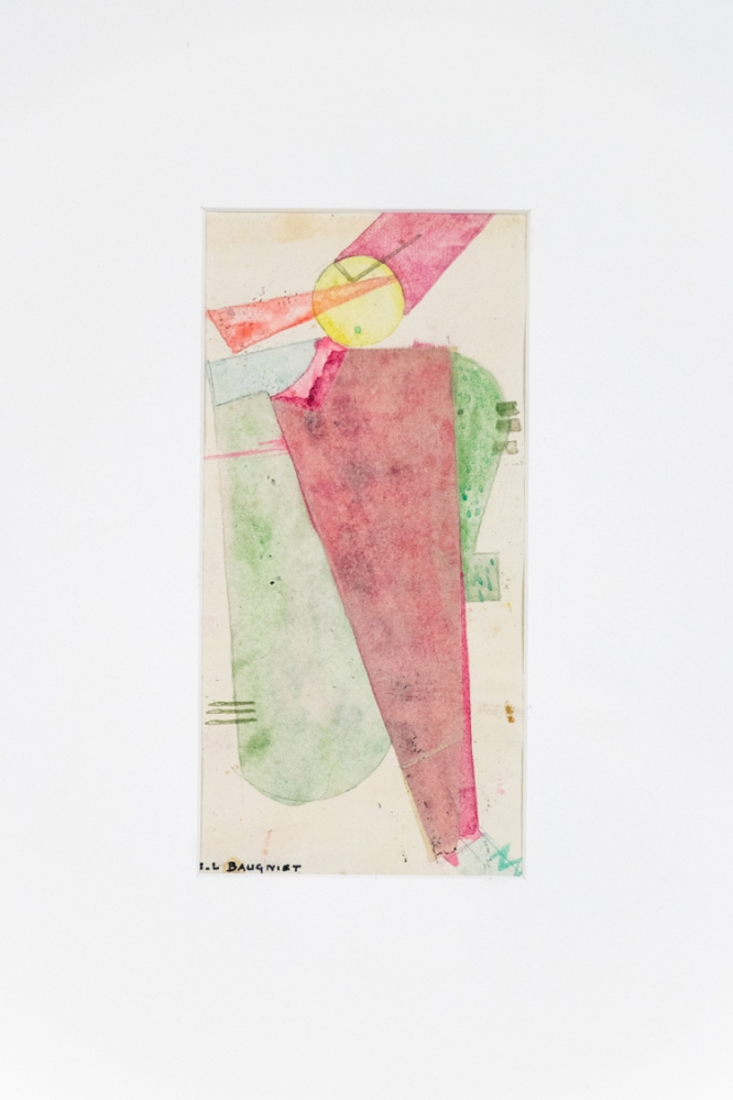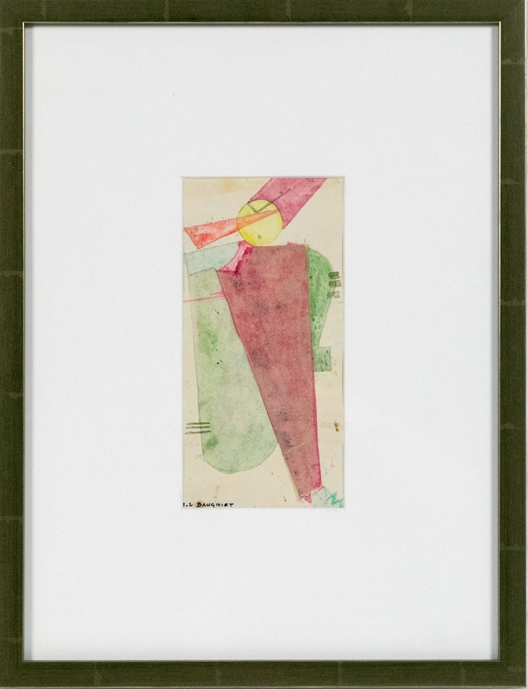 Aquarel, aangevuld met grafiet en collage op papier uit 1924 van Marcel-Louis Baugniet. Met de hand gesigneerd links onderaan.