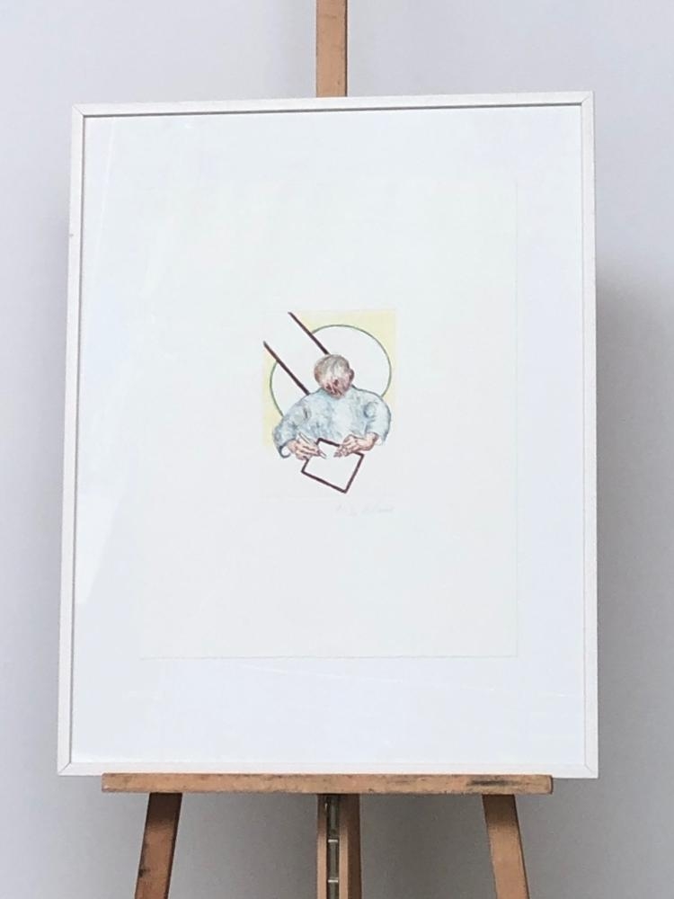 Roger Raveel. Kleurenets uit 2007. Het werk wordt beschreven in het grafisch oeuvre onder nummer 264 op pagina's 208-209. Dit exemplaar betreft niet één van de 'gewone' exemplaren uit de bibliofiele uitgave. Het betreft één van de slechts tien losbladige overdrukken op groter formaat. Het werk is gesigneerd en genummerd h.c. 3/10. Deze ets is ingelijst met een witte kader en een fondblad. Het werk is in goede staat. Het wordt stevig ingepakt bij het vesturen.