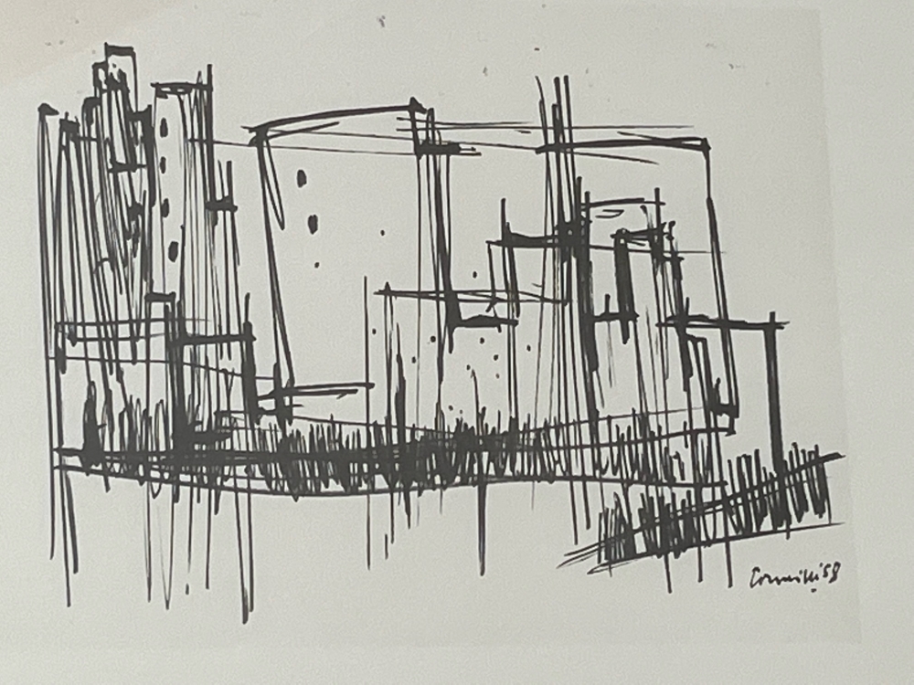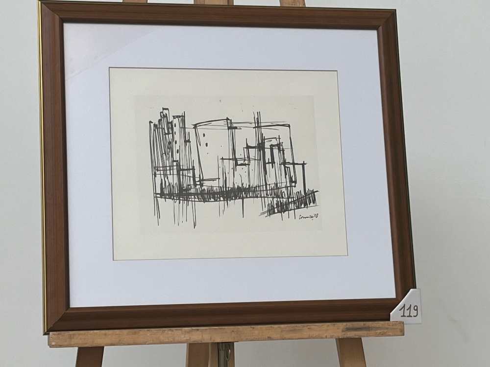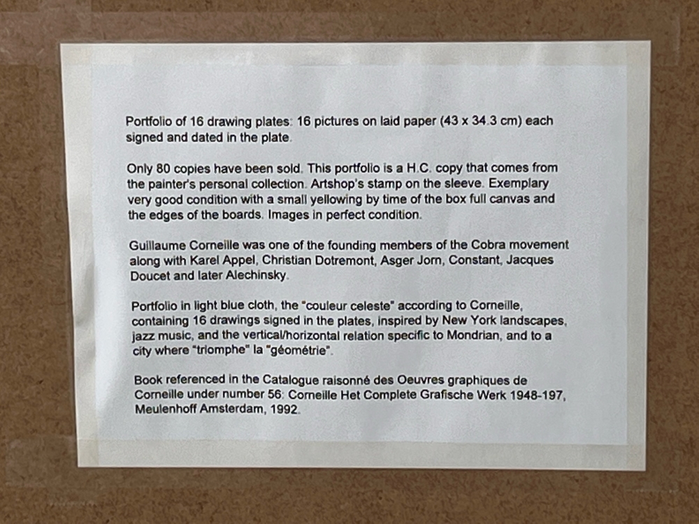 1922-2010 "Foto's van New York" tekening gedrukt op vergé papier gesigneerd en gedateerd in de plaat er werden slechts 80 exemplaren verkocht ingelijst en in goede staat beschrijving op de achterkant afdrukformaat 43cm x 34,3cm afmeting met lijst 54cm x 61cm