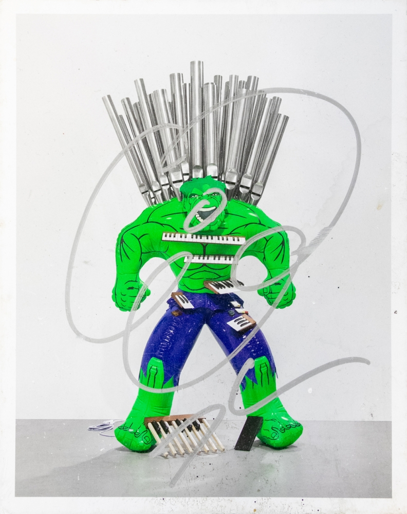 Gesigneerde print van Hulk organ door Jeff Koons. Het origineel was een bronzen sculptuur van een opblaasbare hulk.
