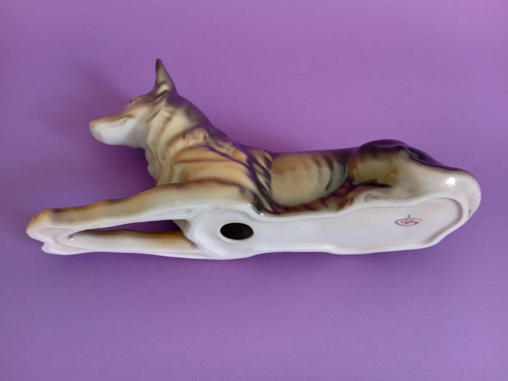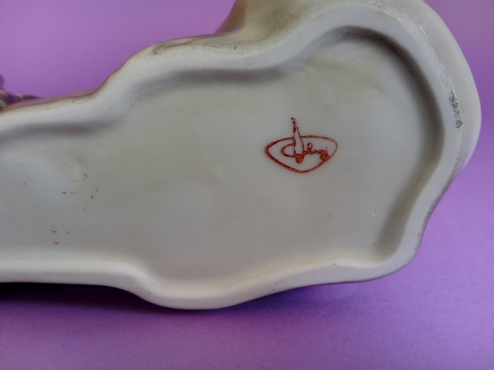 Art Deco Porselein - Beeldje De porseleinfabriek Cluj-Napoca werd opgericht in 1922 in Transsylvanië. Het is in goede staat ondanks zijn leeftijd. Lengte - 23cm Breedte - 8cm Hoogte - 12cm Gewicht - 293 gram