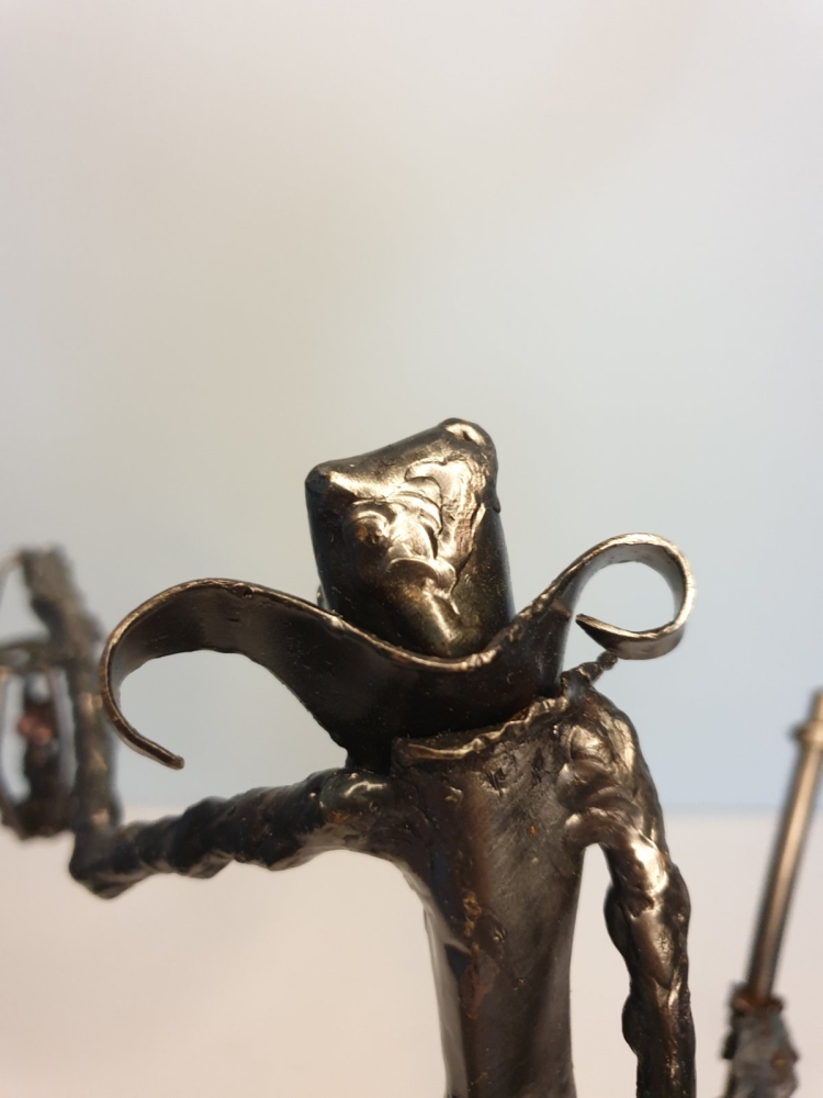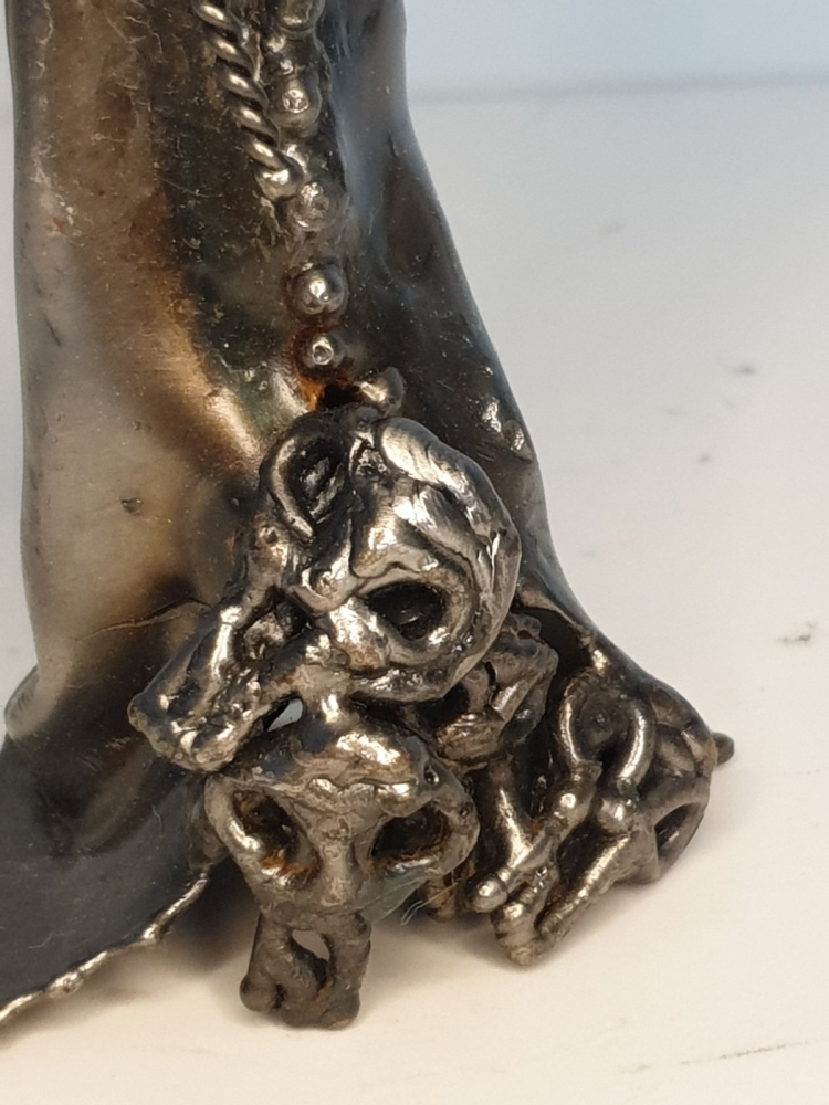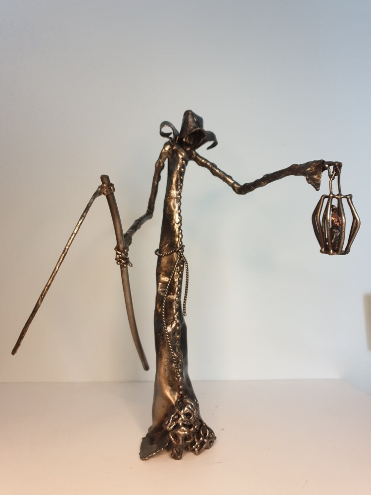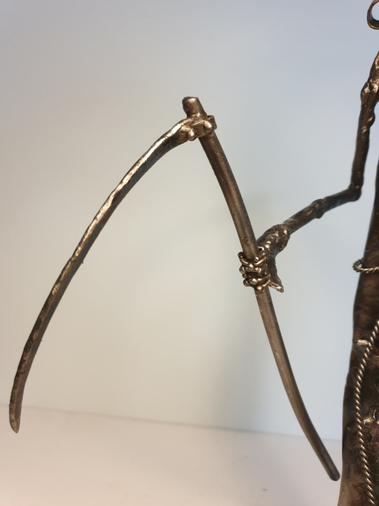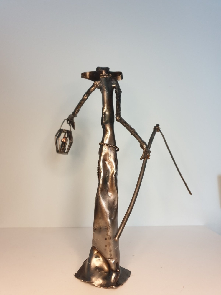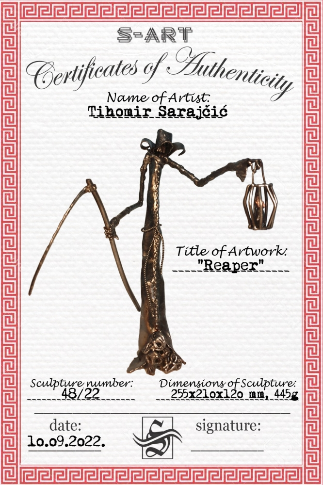 Reaper - metal sculpture, welding and forging, it is not a casting... Material: carbon steel color: metal, sprayed with transparent spray dimensions: 255x210x120mm, 455g, only for indoor use...... On the Certificate of Authenticity, number 48/22 represents the serial number of the sculpture made in 2022. One of a kind work Unique work, comes with a certificate of authenticity. IMPORTANT NOTE: SHIPPING TO THE EU ONLY - NO SHIPPING TO NON-EU COUNTRIES. Tihomir Sarajcic is owner of S-art a Croatian craft studio/workshop that composes sculptures with welded and painted iron/ metal and wall art. Exhibitions since 2015 in city library Slavonski Brod. The S-art studio also participate on art festivals.....