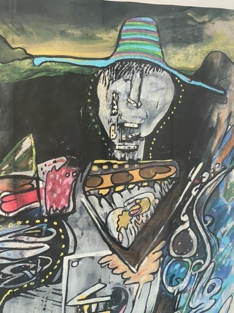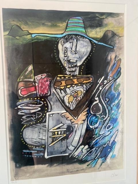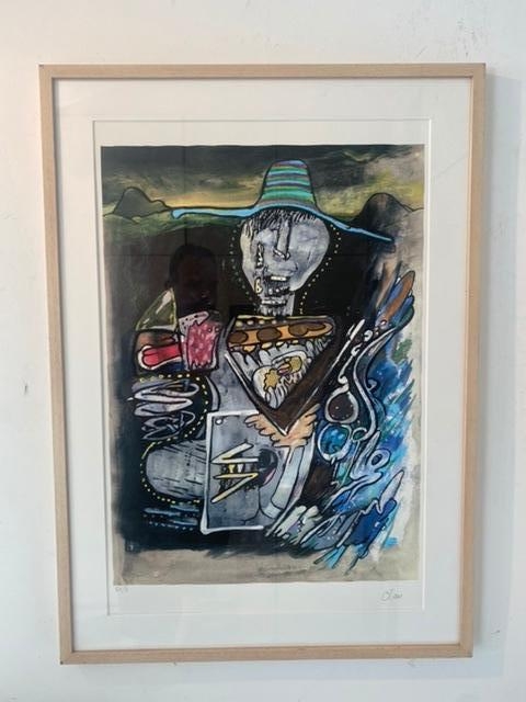 Ludieke litho van de Vlaamse auteur en kunstenaar Hugo Claus. Het werk est gesigneerd op 100 exemplaren en ingelijst. Claus trok veel op met de leden van de CoBrA-beweging, wat resulteert in deze bijzondere stijl.