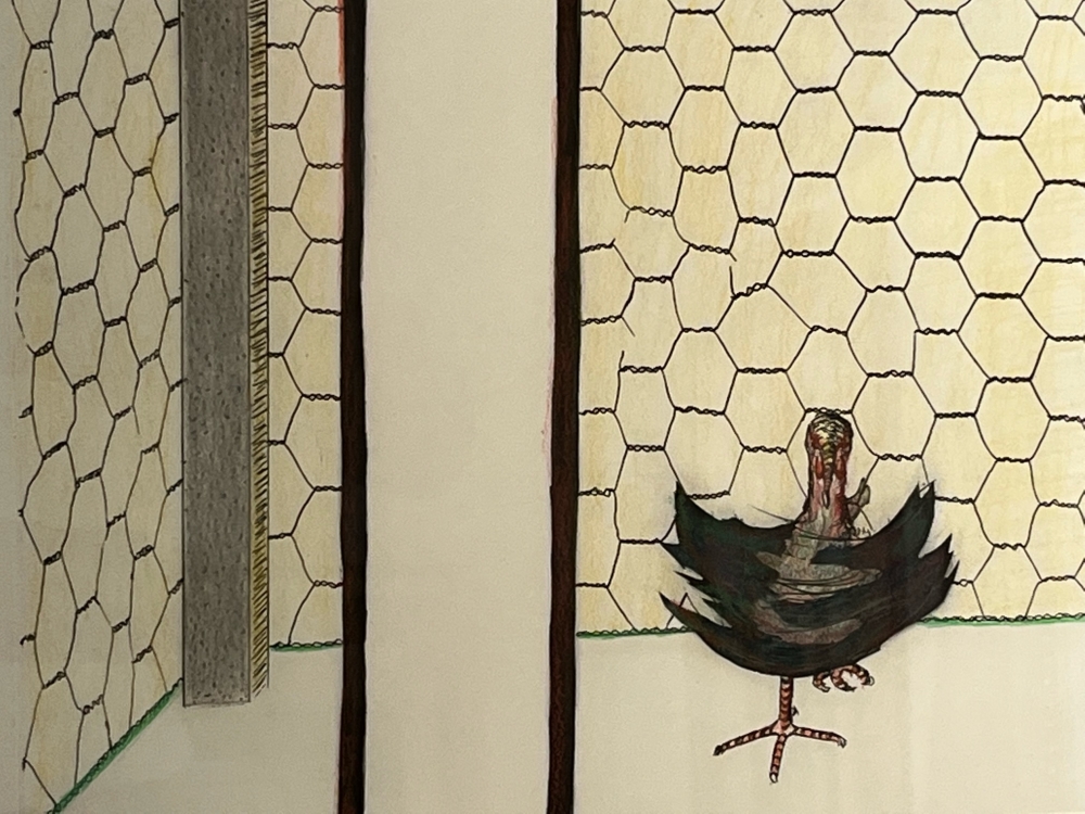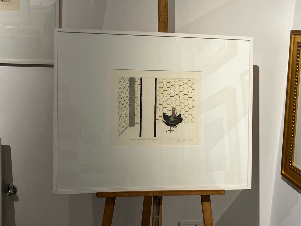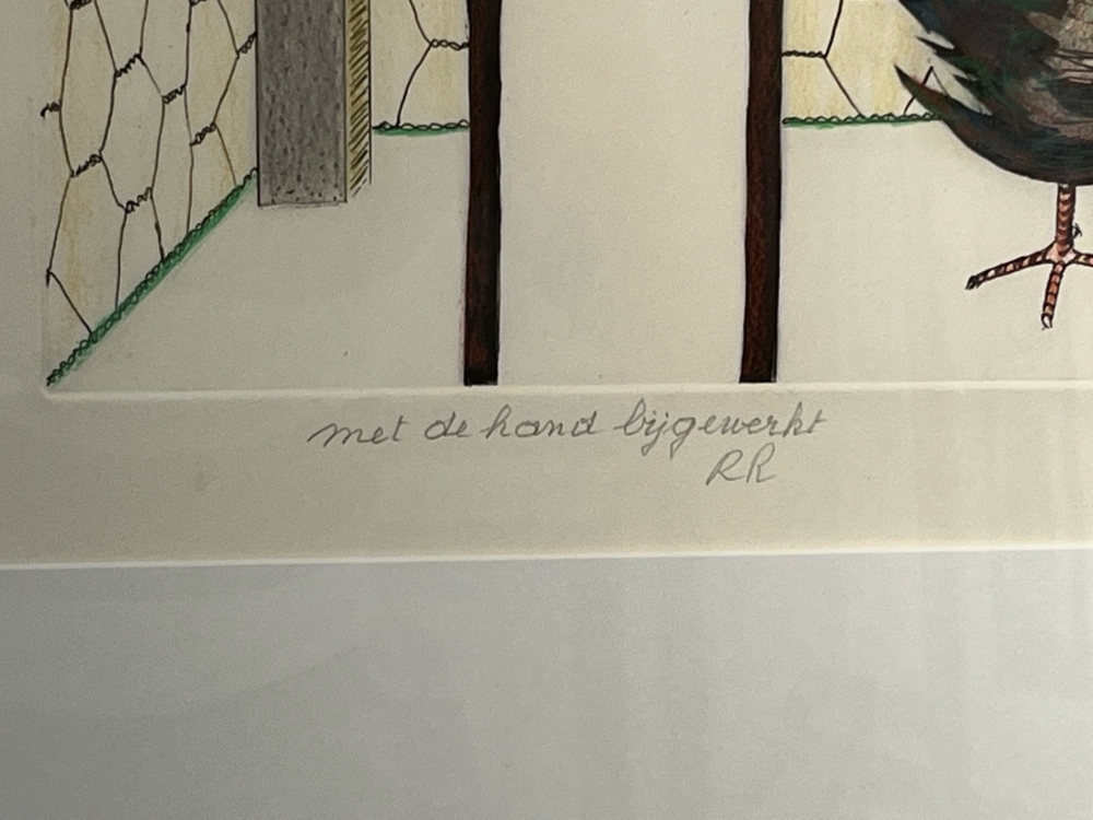 originele ets van Raveel Met de hand bijgekleurd ingelijst met passe-partoutpapier en een bijpassende kader in goede staat terug te vinden in het boek met grafische werken op pagina 61 32C.4