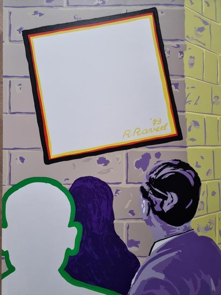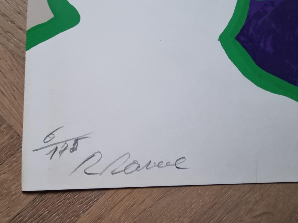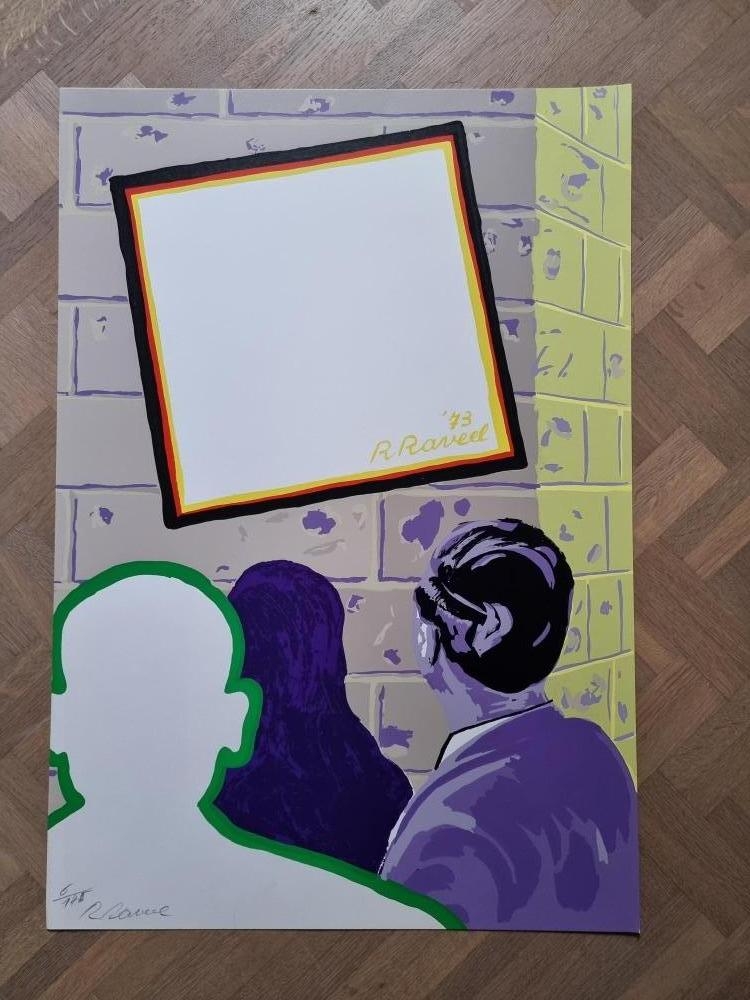 Prachtige kleurenlithografie van Roger Raveel uit 1973. Getiteld: "Toeschouwers" Het werk is gesigneerd en genummerd door de kunstenaar in potlood (linksonder). Editie op 175 ex. Niet ingelijst - in perfecte staat.