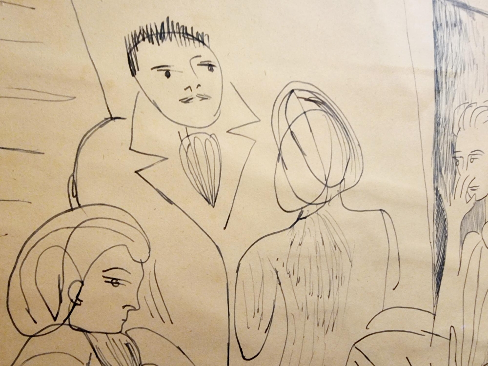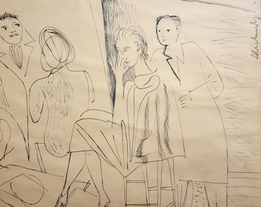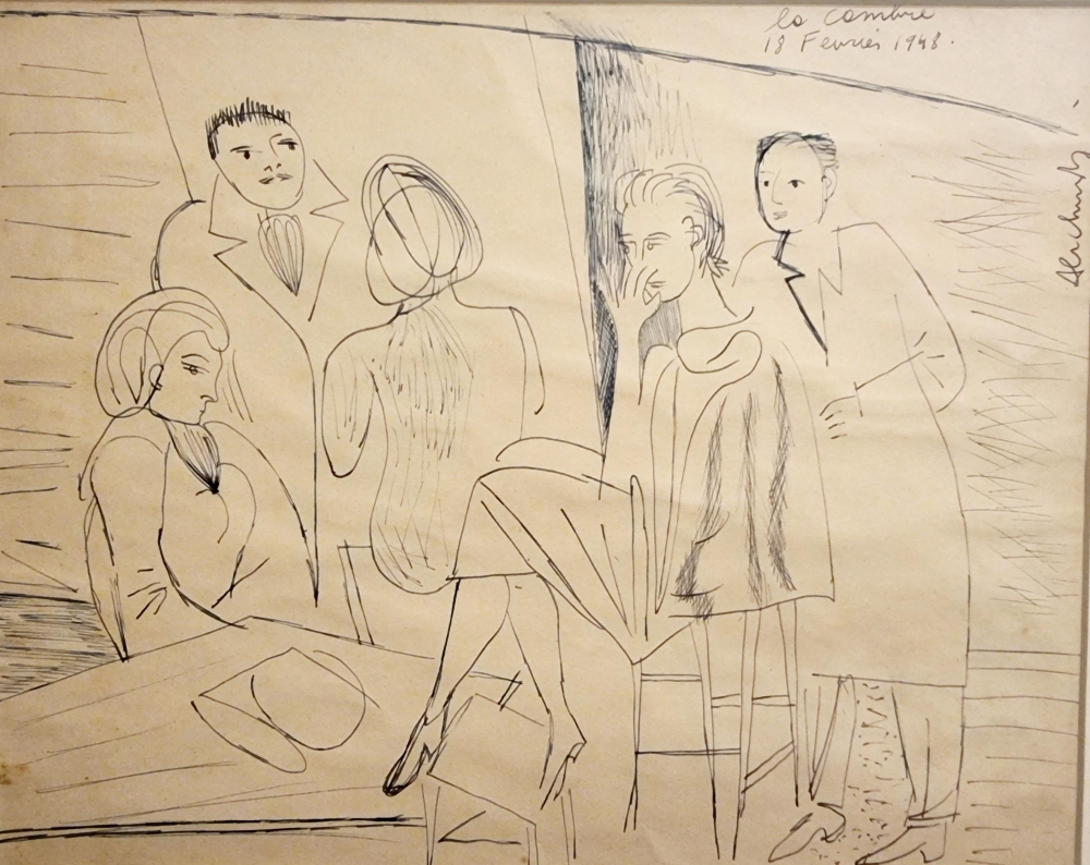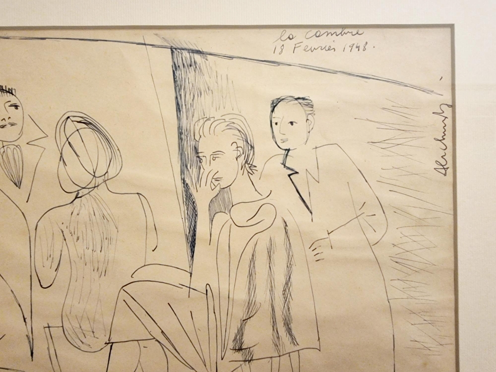 Originele en bijzonder zeldzame pen-tekening van Pierre Alechinsky. De tekening is gemaakt in 1948 (18 februari) tijdens zijn studies in de prestigieuze kunstacademie La Cambre in Brussel. Het werk is gesigneerd door de kunstenaar. Pierre Alechinsky heeft de autheticiteit bevestigd van deze tekening