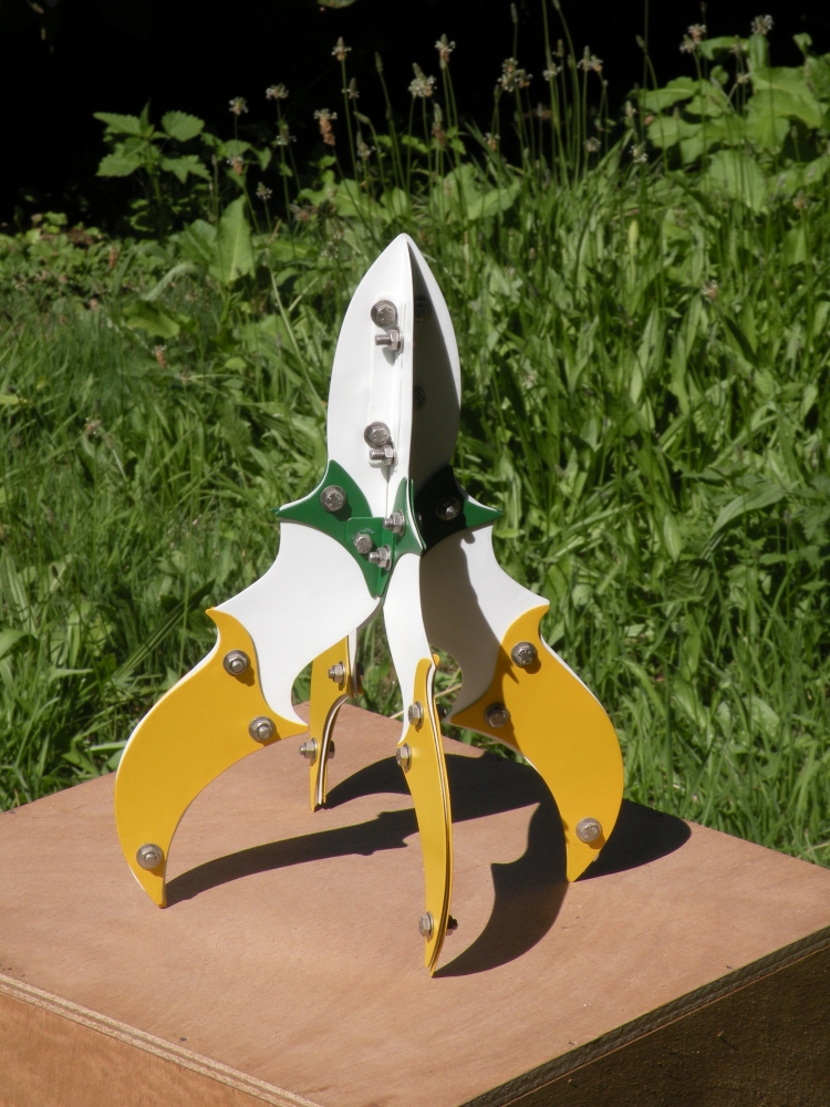 Small Sugar Loaf Shapes Sculpture, creation of the metal sculptor Mathias Lardin, from an original drawing by the Artist, made of fine steel sheet, painted and varnished shapes and assembled with stainless steel bolts. Among the first Works of this new family of "Sculptures Forms" works of art, the Artist gave it the name Sugarloaf because he imagined this Work of art at the time of the Rio Olympics in 2016 and also in relation to the choice of colors used and the appearance of the sculpture. It is a plastic research of elegant and dynamic lines and shapes, to be placed in its interior, on a low cabinet, a shelf, a niche or a podium, etc...