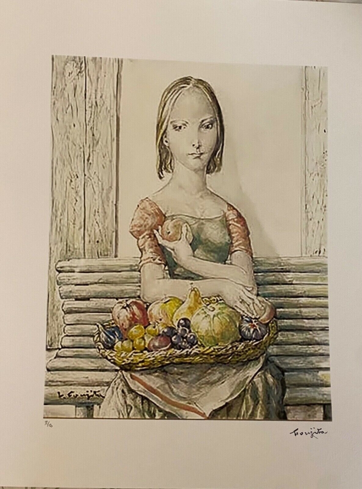 Foujita Panier de fruits Signed in plate and Numbered Certificat of editing 28 x 38 cm Arches paper Comes unframed Signed in plate Certificate of editing Stamped Limited edition Delivered with insurance and tracking Number