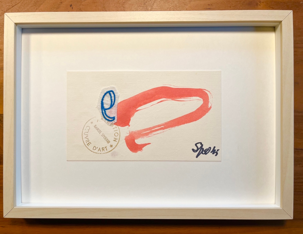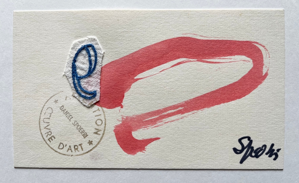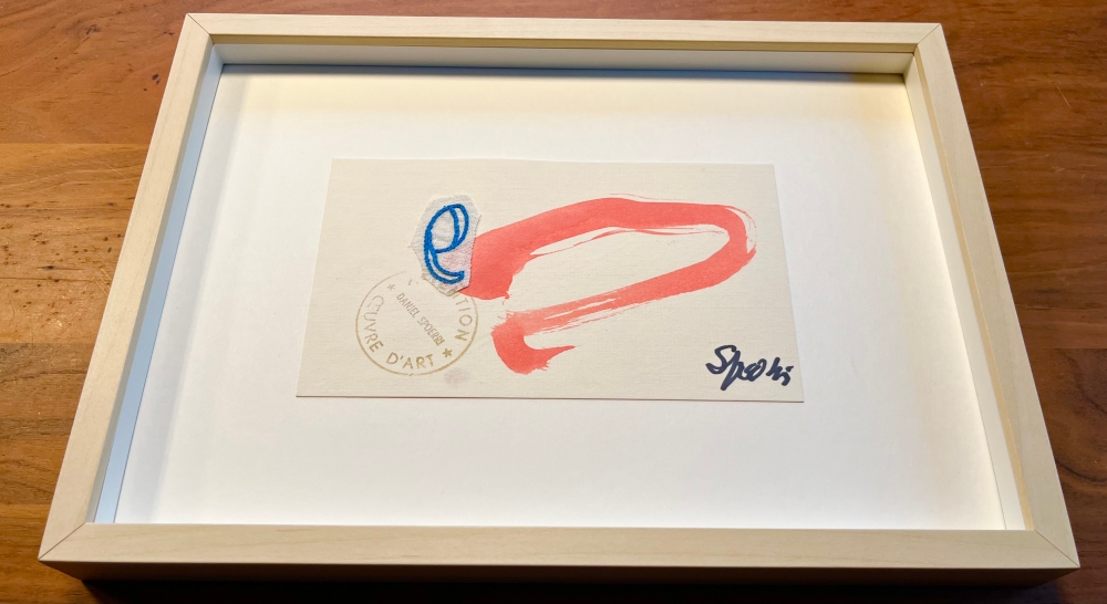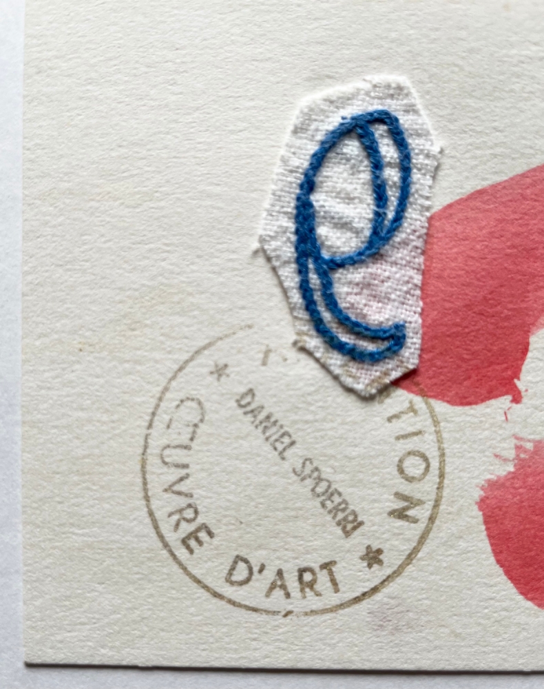 This is an unique work by Daniel Spoerri. It is a collage with cloth and gouache. Stamped by Daniel Spoerri and signed in marker by the artist. Authenticity guaranteed. comes in a light wooden frame. The piece is in perfect condition.