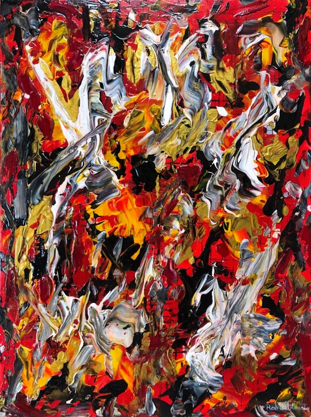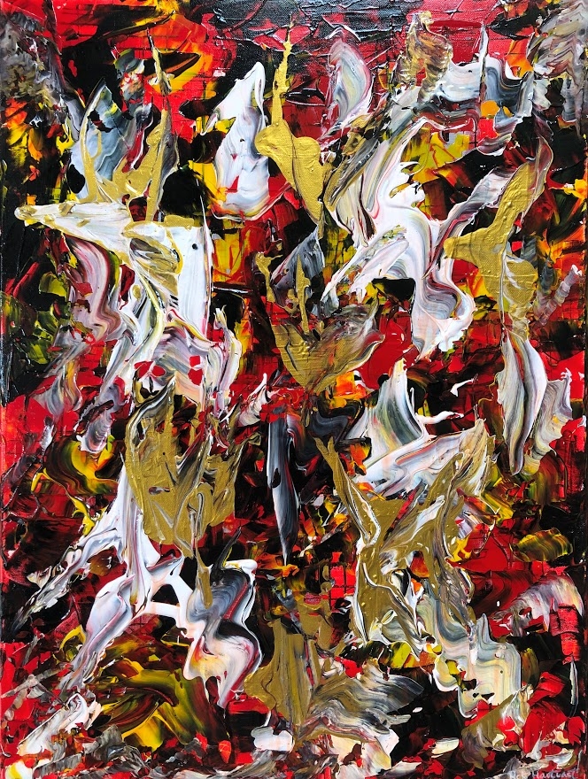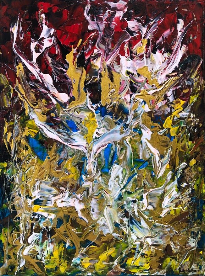 Abstract 104 Formaat 80 x 60cm Afgewerkt met vernis Rob Hautvast, geboren in Den Haag, woonachtig in Zutphen, is een schilder die zijn sporen heeft verdiend als internationaal fotograaf en als Art Director bij verschillende reclamebureaus. Tentoonstellingen in verschillende galeries en verkoop via diverse veilingsites. De werken van Rob zijn ook te zien op de websites van Saatchi Art, Facebook en werkaandemuur.nl. Ook te vinden op e-bay en Marktplaats. Het assortiment schilderijen wordt regelmatig uitgebreid.