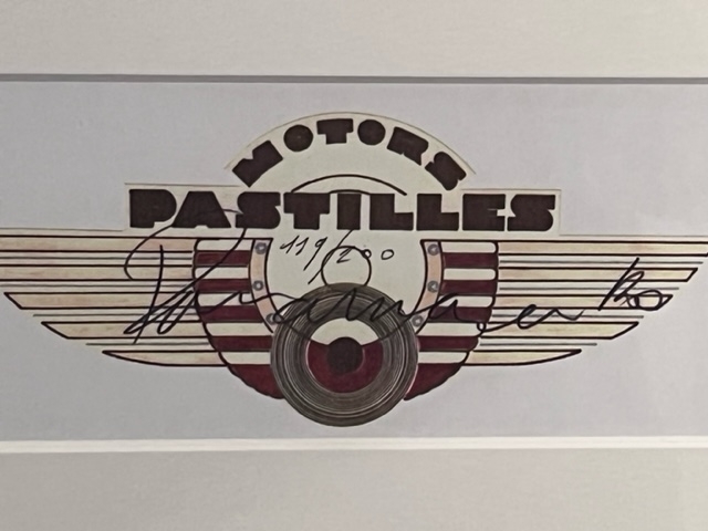Panamarenko motorpastilles uit "reis naar de sterren" editie 119/200 Panamarenko, de artiestennaam van Henri Van Herwegen was een Belgisch beeldhouwer. Hij wordt beschouwd als een van de voornaamste Belgische beeldhouwers uit de tweede helft van de 20e eeuw. Hij maakte veel assemblages die met vliegen te maken hebben.
