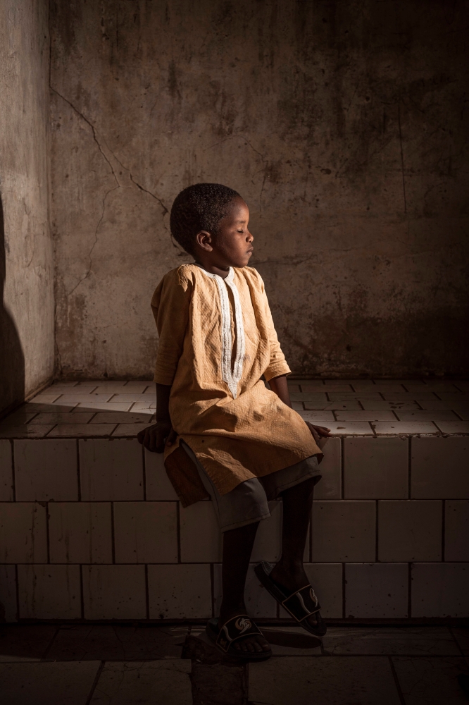 Schoonheid is overal te vinden, zelfs in een oud gebarsten schoolgebouw. De jongen in de zon, beseft niet eens hoe geweldig hij eruitziet. Zelfs op een donkere, stoffige plek is er altijd een lichtstraal, je hoeft er alleen maar naar te zoeken. 60X40 - gedrukt op fine art papier (Hahnemühle)
