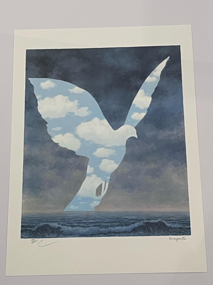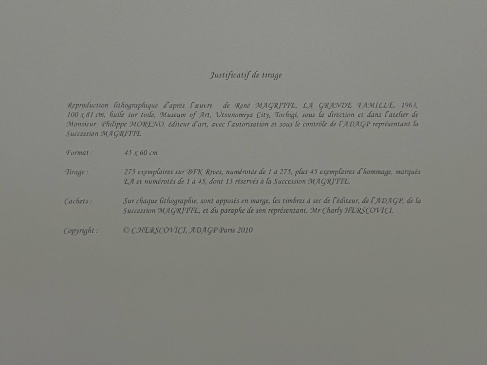interpretatielithografie naar het werk van René Magritte privécollectie, geproduceerd onder leiding en in het atelier van de heer Philippe Moreno, kunstuitgever in Brussel, met toestemming en onder toezicht van ADAGP die het landgoed Magritte vertegenwoordigt. copyright C. Hersovici, ADAGD Parijs 2010