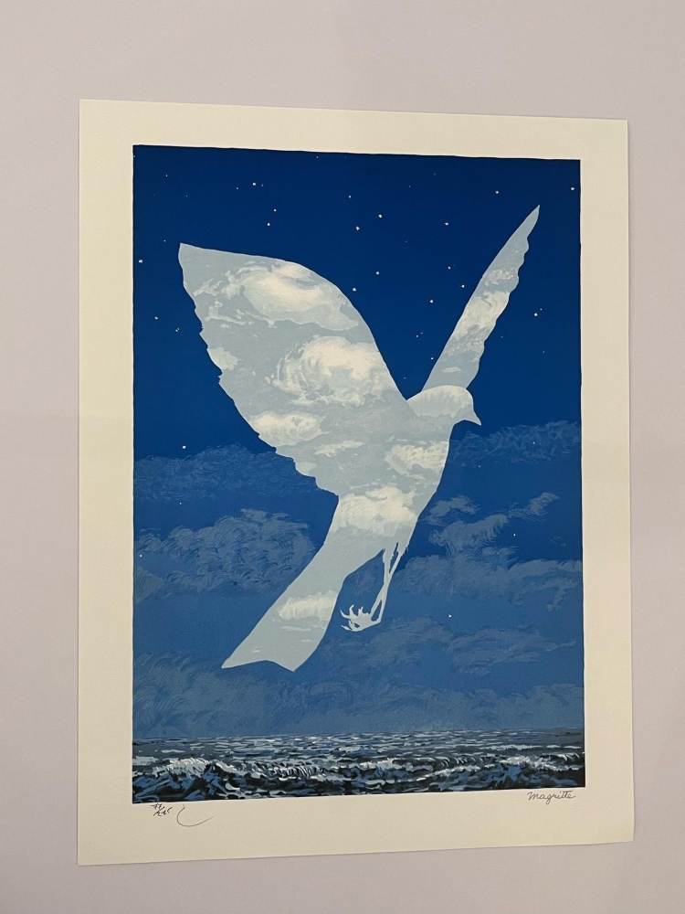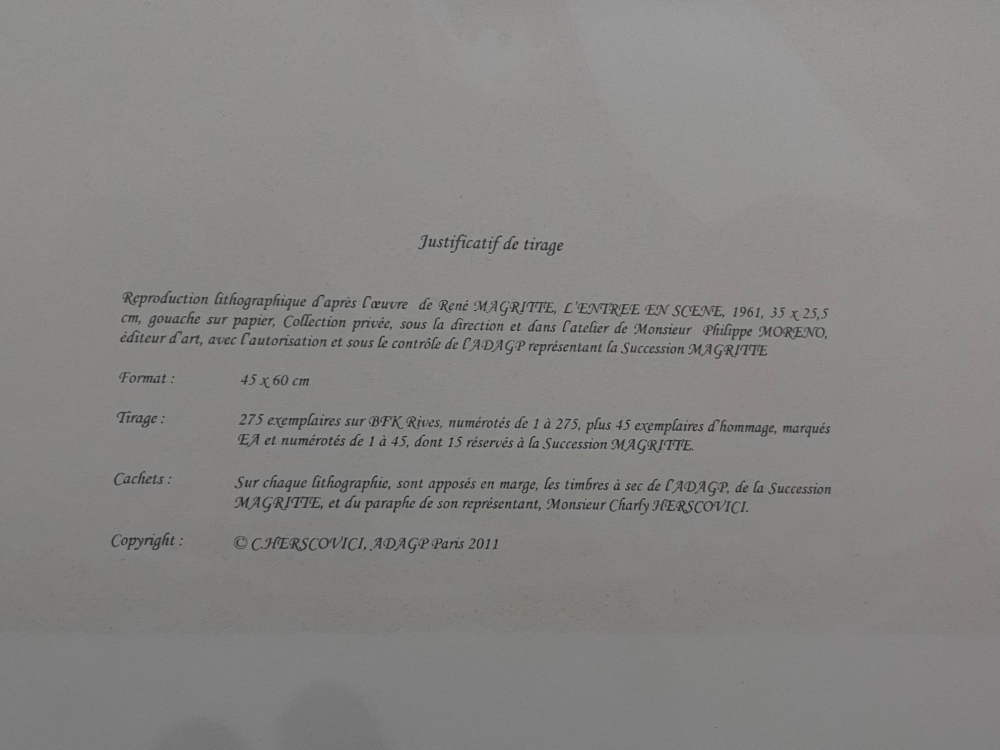 interpretatielithografie naar het werk van René Magritte privécollectie, geproduceerd onder leiding en in het atelier van de heer Philippe Moreno, kunstuitgever in Brussel, met toestemming en onder toezicht van ADAGP die het landgoed Magritte vertegenwoordigt. copyright C. Hersovici, ADAGD Parijs 2010