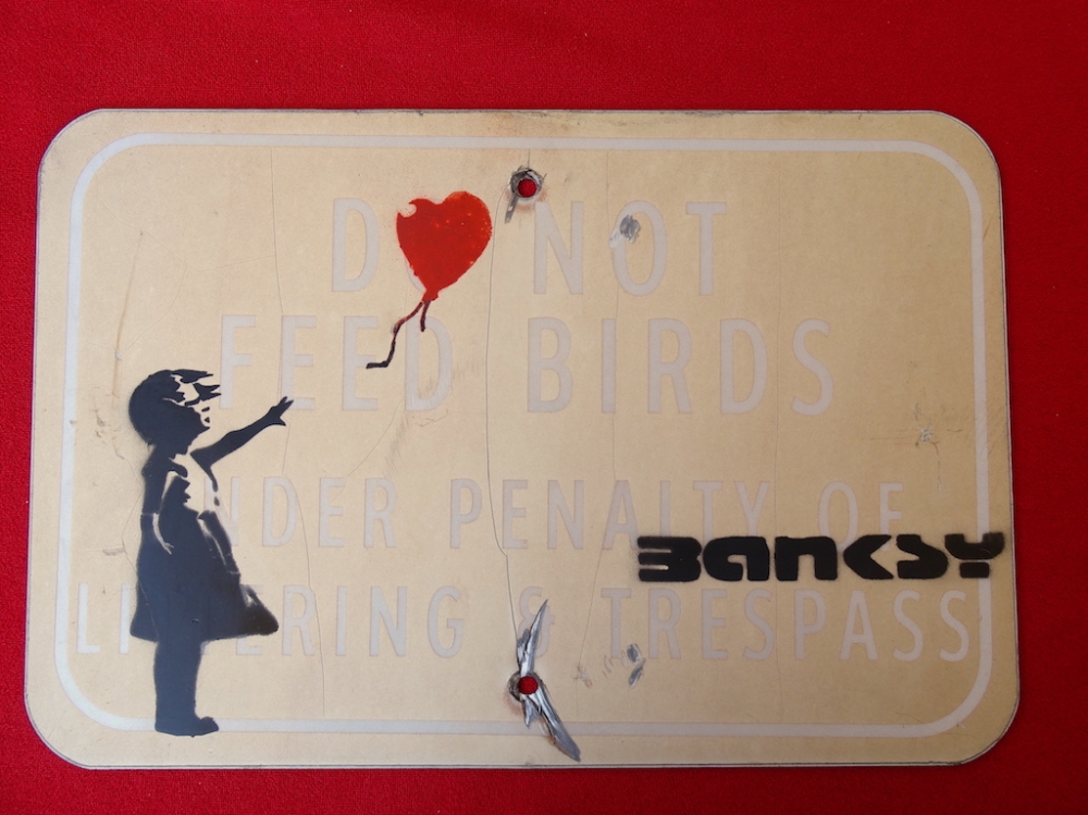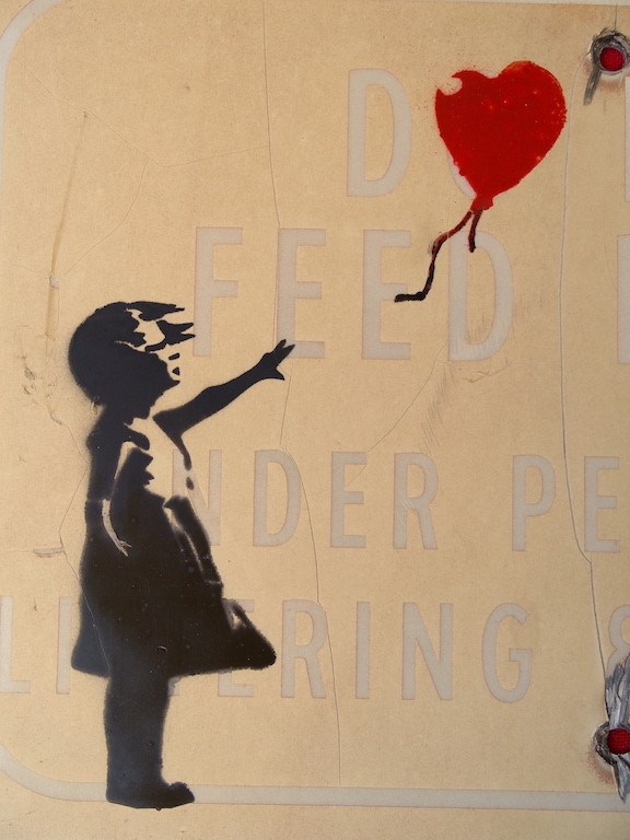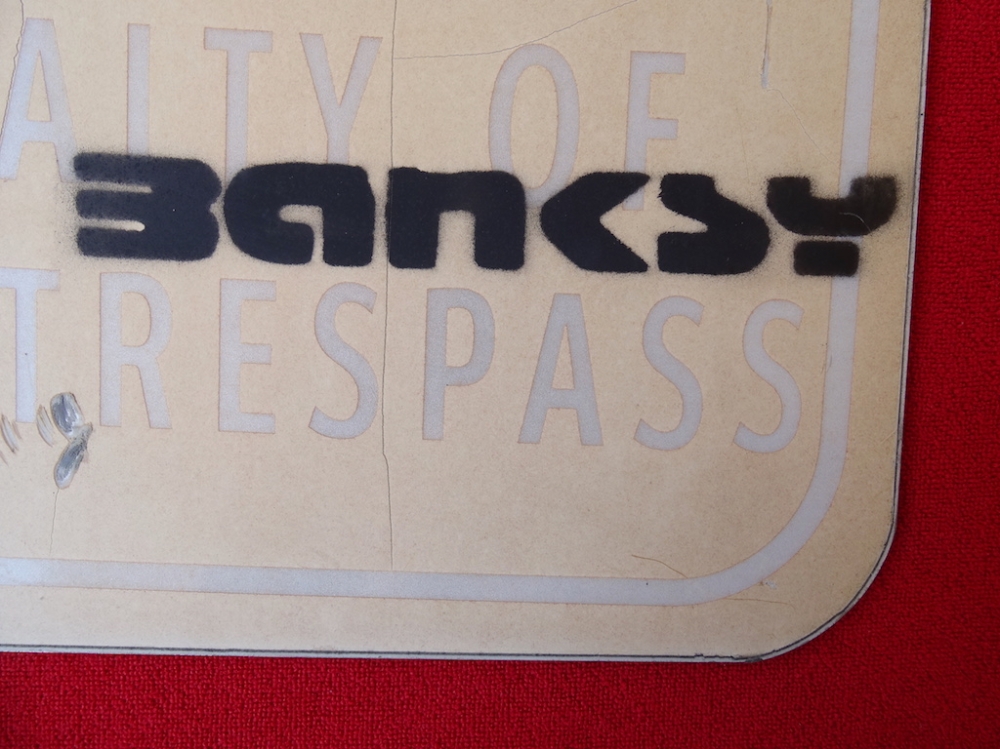 Banksy spuitverf (toegeschreven) Provenaan: particuliere verzamelaar Het object kan niet worden geverifieerd door Pest Control. Pest Control authenticeert alleen werken van Street Art die zich nog op hun plaats van herkomst bevinden. Dit werk is verwijderd van de oorspronkelijke site en volgens Pest Control is het niet gemaakt voor commerciële doeleinden, daarom weigert Pest Control het werk te authenticeren.