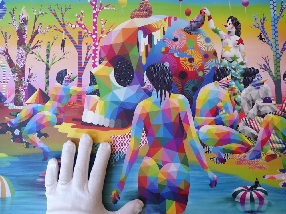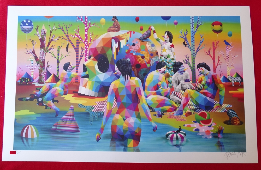 Okuda San Miguel Hand signed and numbered Adaptation of Okuda San Miguels El lago del deseo (Lake of Desire), his first large format work in his career. Frame not included The Spanish artists first interpretation of the Garden of Earthly Delights by Hieronymus Bosch, one of his biggest inspirations. The work has formed part of two of Okudas biggest public exhibitions: his retrospective at Valencias Carmen gallery for the Fallas festival and the Art Madrid fair, both in 2018. Limited edition of 500 copies numbered and hand signed by the artist 70×44 cm Okuda is one of the most important pop art artists of the 20th century in the new pop culture, such as Andy Warhol, Keith Haring, KAWS, Roy Lichtenstein, Banksy, Damien Hirst, Invader, or Jean-Michel Basquiat.