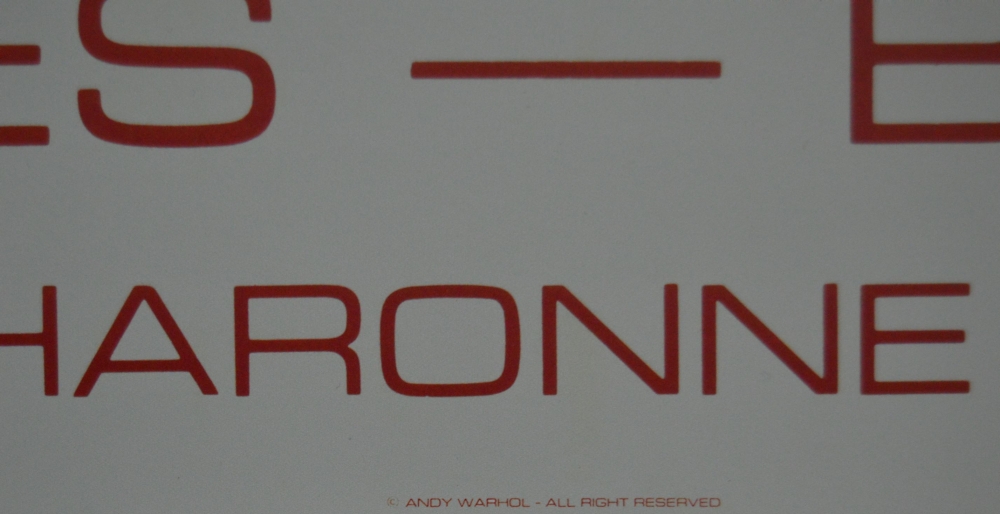 Prachtige poster van een van Warhol's laatste tentoonstelling, 8 april - 30 mei 1986 in Parijs Warhol exposeerde 10 verschillende schilderijen van het Vrijheidsbeeld. Copyright Andy Warhol. Offset Lithografie Afmetingen: 100 cm x 70 cm Galerie Lavignes-Bastille-Parijs In uitstekende staat. Nooit ingelijst geweest. Wordt verzonden in een ruime koker.