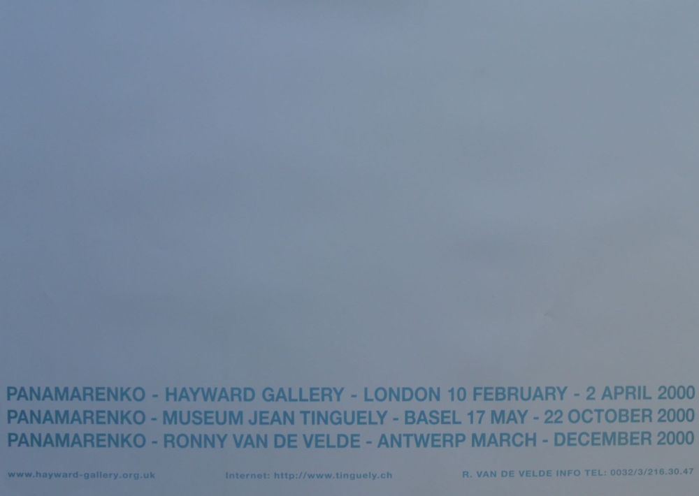 Groot formaat offsetlitho - Beperkte oplage - 2000 Offsetlithografie/ tentoonstellingsaffiche uitgegeven door Ronny Van de Velde (Hayward Gallery & Musée Jean Tinguely) Ontwerp: foto naar het werk 'Scotch Gambit' van Panamarenko voor zijn tentoonstelling bij Ronny van de Velde in 2000 Afmetingen: 116 cm x 83 cm Gesigneerd in de druk, rechts onderaan. Conditie: goede staat. Afbeelding wordt in vele boeken van Panamarenko afgebeeld. Wordt aangetekend verzonden in een ruime koker.